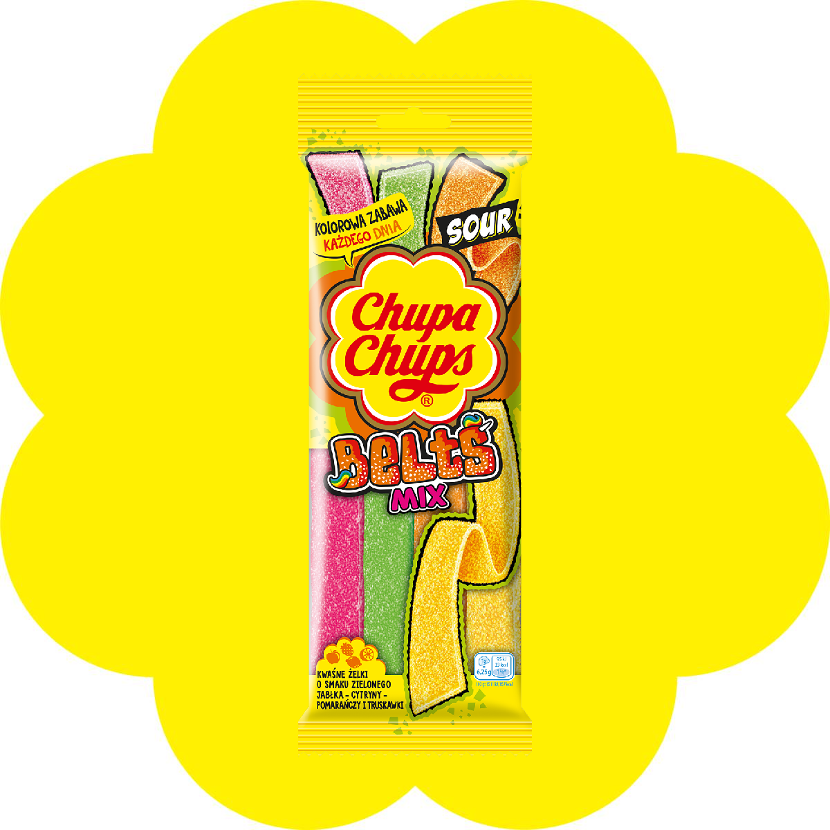 Długie, kwaśne i kolorowe? To nowe żelki Chupa Chups owocowe. Rozciągnij, ugryź i rozwiń zabawę z tymi kwaśnymi paskami. Niech fun trwa jeszcze dłużej z żelkami Long Belts od Chupa Chups!