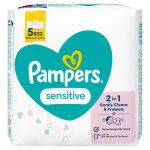 Chusteczki Pampers Sensitive pielęgnują wrażliwą skórę Twojego dziecka w możliwie najłagodniejszy sposób dzięki miękkiemu i grubemu materiałowi. Enzymy znajdujące się w siusiu i kupce zmieniają pH skóry, zwiększając ryzyko wystąpienia podrażnień i wysypki. Wszystkie chusteczki Pampers zawierają wyjątkową formułę, która chroni naturalne pH skóry lepiej niż bawełniane płatki kosmetyczne nasączone wodą, oczyszczając nawet najbardziej wrażliwą skórę i chroniąc ją przed podrażnieniami.