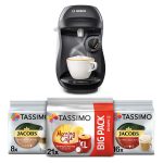 Ekspres kapsułkowy Bosch Tassimo Happy czarny +3x Tassimo: Cafe Au Lait, Morning XL Strong, Latte M. Classico