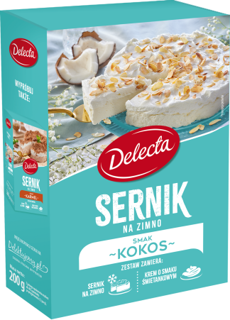 Ciasto Sernik na zimno smak kokosowy Delecta 200g puszysty z kremem