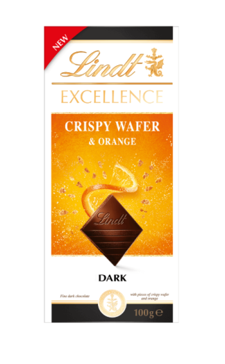 Lindt Excellence czekolada gorzka z chrupiącymi ciasteczkami, kawałkami cukru i z sokiem z pomarańczy 100g