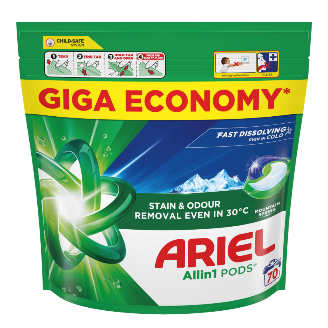 Ariel, marka zalecana przez producentów Whirlpool, Electrolux, Candy i Beko, przedstawia kapsułki do prania Ariel Allin1 PODS Mountain Spring, które zapewniają doskonałe usuwanie uporczywych zabrudzeń, nawet w temperaturze 30°. Zostały opracowane tak, aby doskonale prać nawet w chłodniejszych cyklach, szybko rozpuszczając się nawet w zimnej wodzie i zapewniając nieskazitelne efekty. OSTRZEŻENIE: Ten produkt może być szkodliwy i powodować poważne obrażenia. Zawsze przechowuj kapsułki do prania Ariel Allin1 Pods poza zasięgiem dzieci. Więcej informacji znajdziesz na stronie keepcapsfromkids.eu.