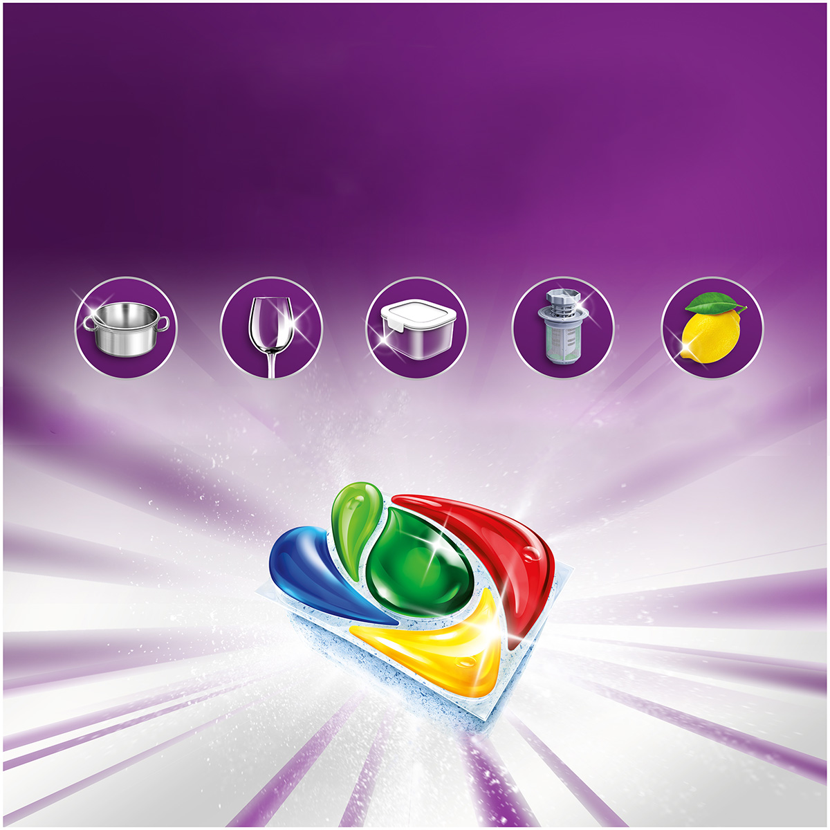 Te niezawodne tabletki do zmywarki All In One zapewniają nieskazitelne rezultaty nawet w najkrótszym programie i pozostawiają delikatny cytrynowy zapach. Technologia Five Gel Boost zapewnia olśniewającą czystość naczyń, nabłyszczanie, szybkie suszenie, czyszczenie zatłuszczonego filtra i technologię zapobiegającą matowieniu. Fairy działa zarówno w długich, jak i krótkich cyklach mycia, zapewniając doskonałe efekty czyszczenia już za 1. razem bez konieczności wstępnego lub ponownego mycia. Podobnie jak płyn do mycia naczyń Fairy, ale w wygodnej formie tabletek. Te tabletki do zmywarki eliminują konieczność stosowania soli do zmywarek i nabłyszczacza. Doskonale sprawdzają się w zapracowanych domach, zapewniając szybkie i nieskazitelne czyszczenie z efektem namaczania przez noc.