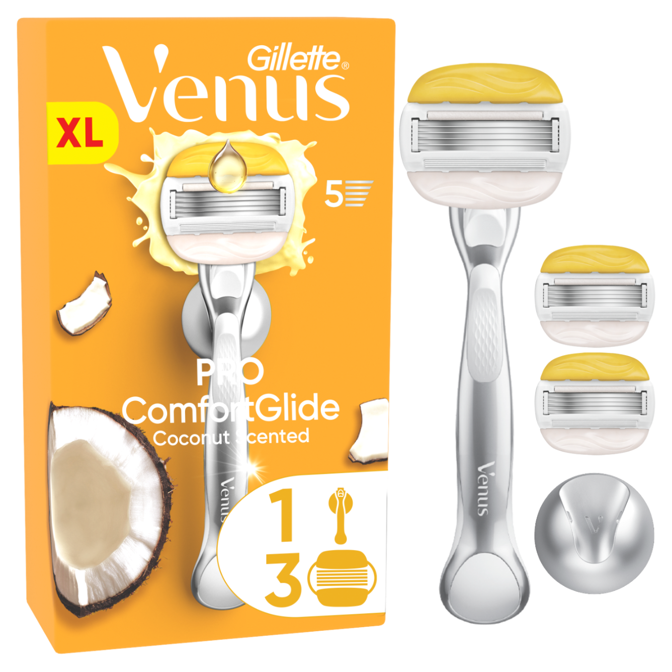 Gillette Venus Pro ComfortGlide o Zapachu Kokosa, Maszynka do Golenia dla Kobiet, 3 Wkłady Wymienne