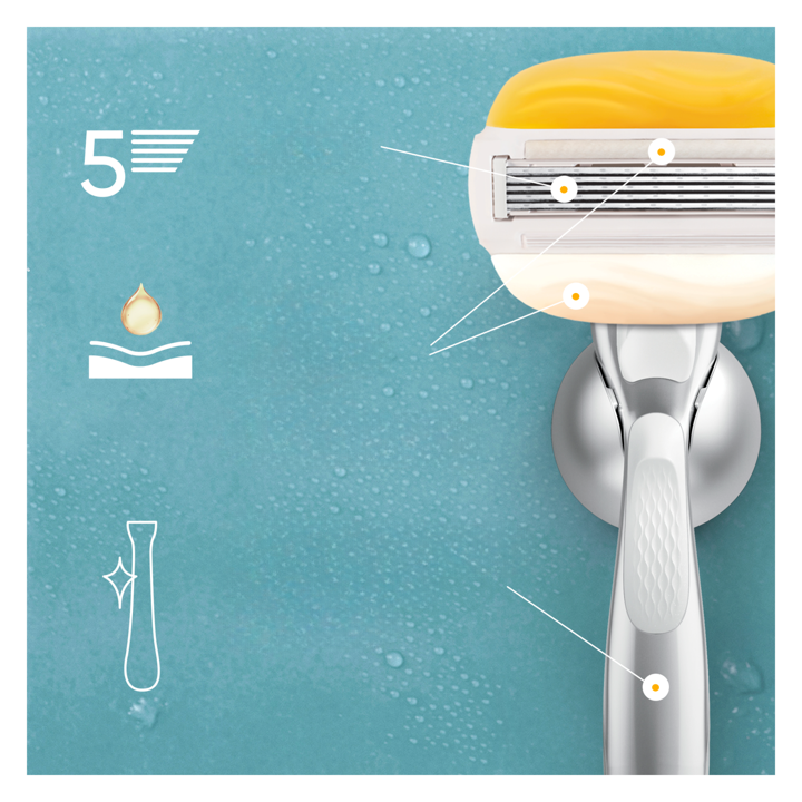 MASZYNKA Z 5 OSTRZAMI: płynnie przesuwa się po suchej skórze, zapewniając długotrwałe efekty golenia