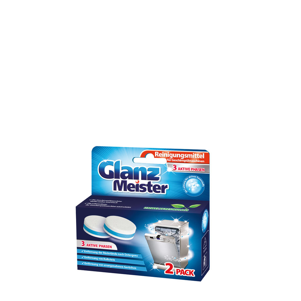 Najnowocześniejsza formuła tabletek przeznaczonych do czyszczenia zmywarki marki GlanzMeister jest wzbogacona aktywnym tlenem, który czyści i neutralizuje nieprzyjemne zapachy.