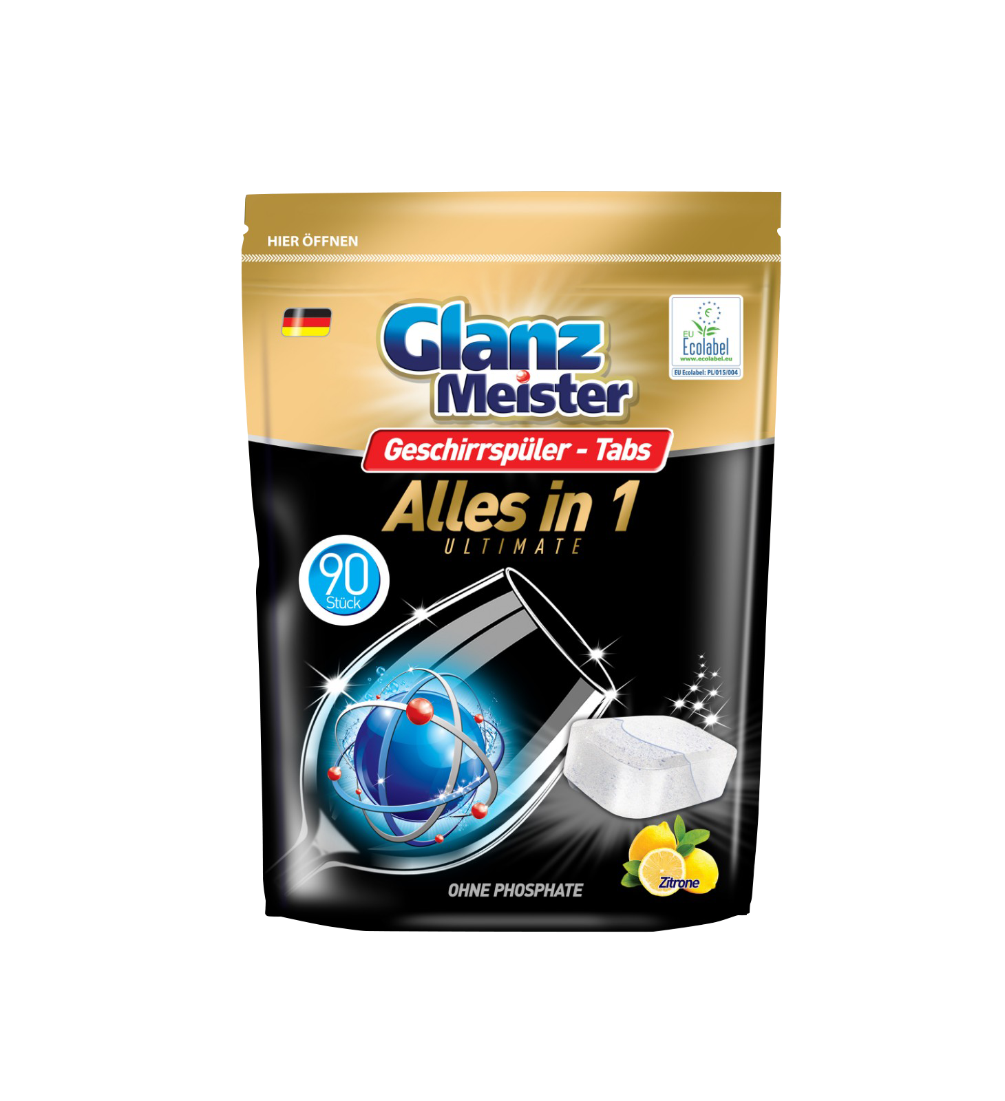 GlanzMeister tabletki do zmywarki 90 szt. Doypack PVOH Eco Label