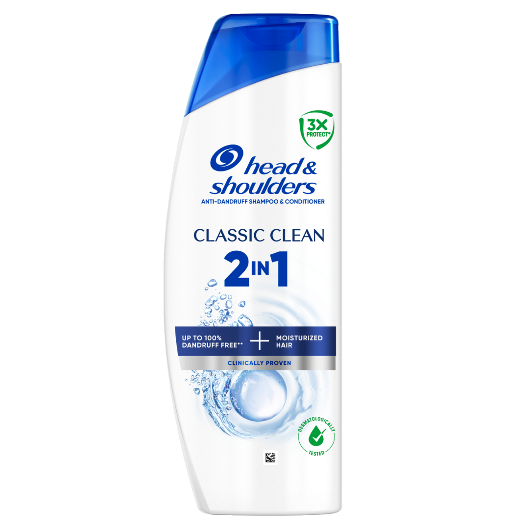 Szampon przeciwłupieżowy Head & Shoulders Classic Clean 2 w 1 do wszystkich rodzajów włosów oraz każdego typu skóry głowy działa nawet na uporczywy łupież. Formuła Microbiome Balance pomaga zwalczać podstawową przyczynę łupieżu i utrzymywać mikrobiom skóry głowy w równowadze. Jest to szampon dla kobiet i mężczyzn, nadający się do codziennego stosowania oraz przeciwdziałający zarówno widocznemu, jak i niewidocznemu łupieżowi. Sprawia, że do porów przenika 2 razy więcej składników ochronnych, co zapobiega nawrotowi nawet silnego łupieżu. Ten szampon 2 w 1 zawiera o 25% więcej składników odżywczych w porównaniu ze zwykłym szamponem Head & Shoulders. Produkt został przebadany dermatologicznie, ma skuteczność potwierdzoną klinicznie oraz odpowiednie pH.