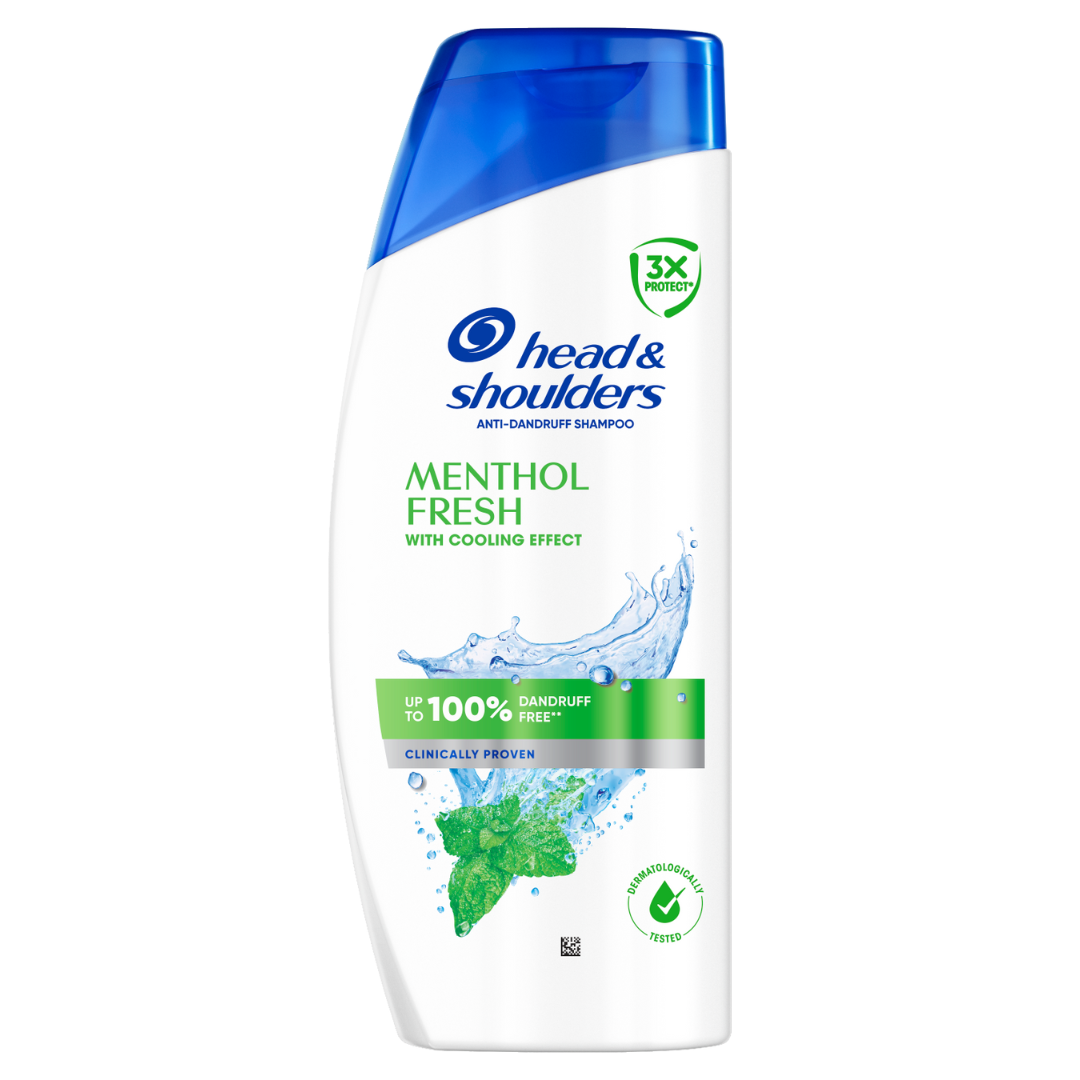 Head & Shoulders Szampon Przeciwłupieżowy Menthol Fresh zapewnia najwyższą skuteczność i efekt chłodzenia, a jednocześnie pielęgnuje skórę głowy. Dzięki formule 3X Protect z Piroktonem Olaminy działa głęboko u źródła, chroniąc skórę głowy przed trzema problemami już od pierwszego mycia. Potwierdzona klinicznie i testowana dermatologicznie formuła zapewnia do 100% ochrony przed łupieżem i nadaje się do codziennego stosowania. Zwalcza trzy problemy ze skórą głowy: łupież, swędzenie spowodowane łupieżem i nadmiar sebum Przy regularnym stosowaniu.