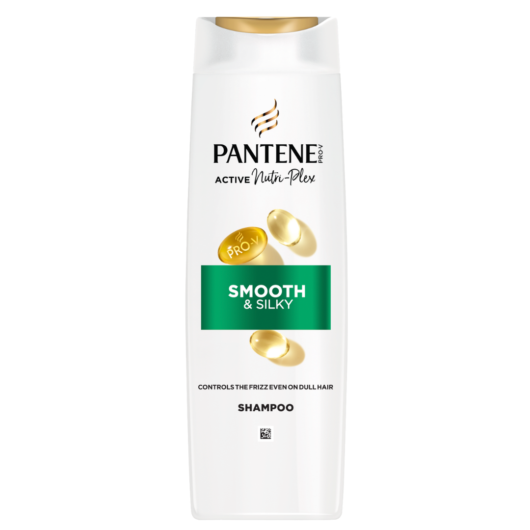 Odkryj szampon Pantene Smooth & Sleek, sekret gładkich i lśniących włosów. Delikatna formuła z PRO-V i innowacyjną technologią ACTIVE NUTRI-PLEX oczyszcza włosy, dostarczając im niezbędnych składników odżywczych. Nawilża matowe pasma, zapobiegając ich puszeniu się i pozostawiając je jedwabiste i gładkie. Testowany przez Swiss Vitamin Institute. Poczuj największą przyjemność w pielęgnacji włosów dzięki szamponowi Pro-V Active Nutri-Plex Smooth & Sleek.