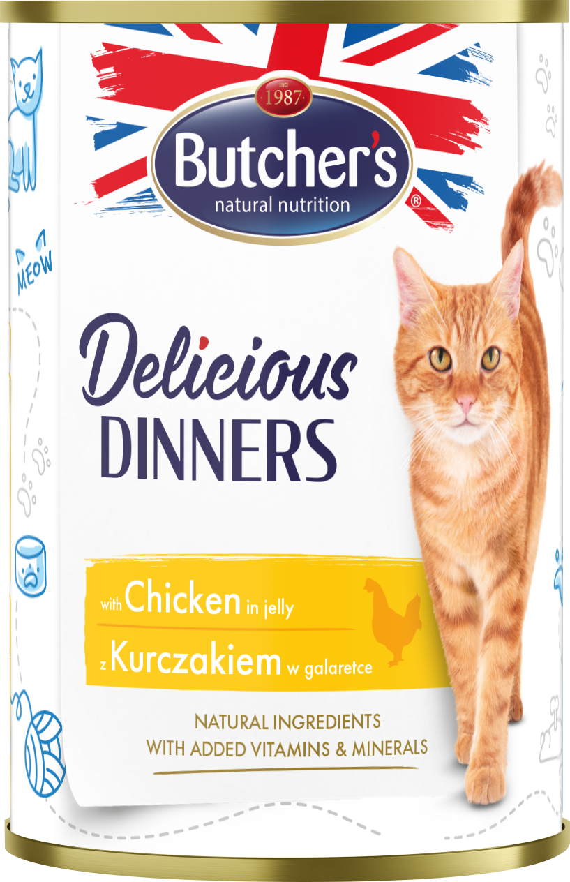 Butcher’s Delicious Dinners, Karma dla kota, z kurczakiem, kawałki w galaretce, 400g