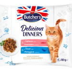 Butcher’s Delicious Dinners, Karma dla kota, z łososiem oraz z pstrągiem, kawałki w galaretce, 4x100g