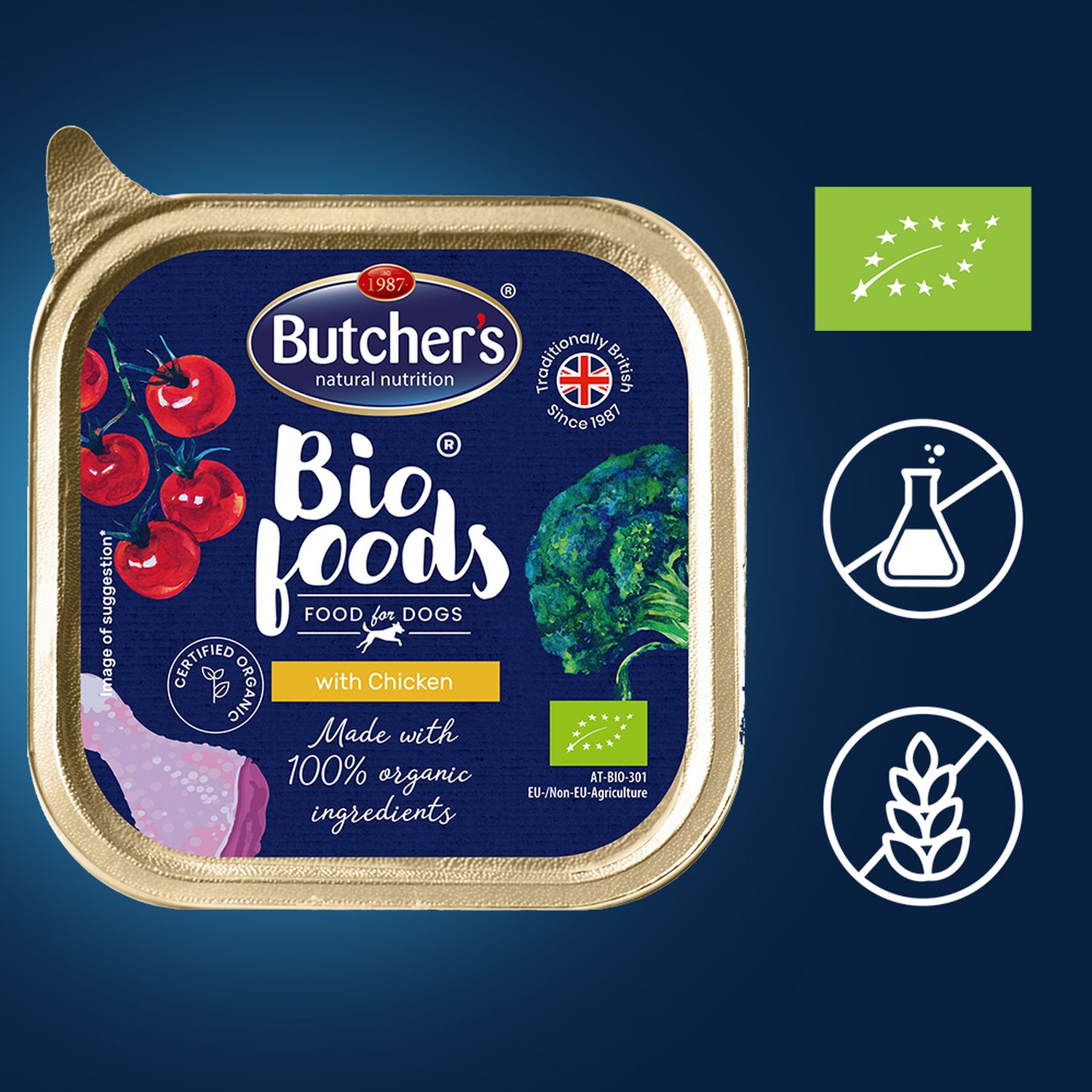 Butcher’s Bio Foods wyróżniają surowce pochodzące wyłącznie z regionalnych gospodarstw rolnych, które posiadają certyfikat produkcji ekologicznej. Stosuje się w nich tylko naturalne nawozy i naturalne środki ochrony roślin zamiast pestycydów, a zwierzętom zapewnia się humanitarne warunki oraz ruch na świeżym powietrzu. Bio Foods to gwarancja zdrowej, zgodnej z naturą diety Twojego pupila.