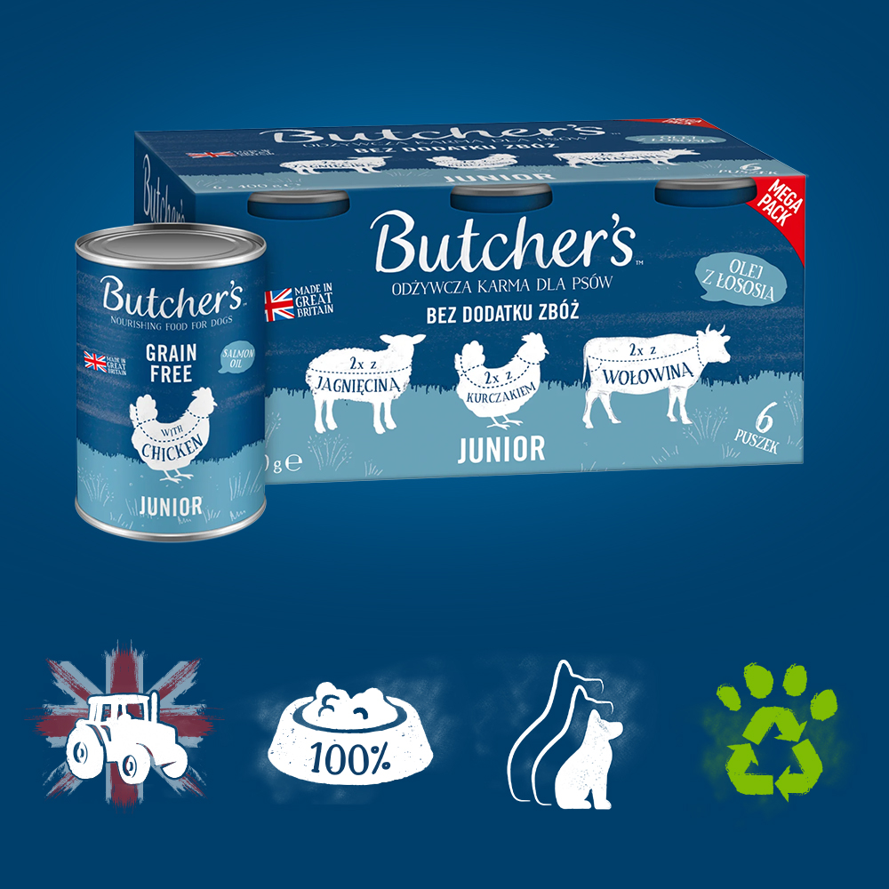 Butcher’s Original Junior 6x400g Kawałki w galaretce z jagnięciną / z kurczakiem / z wołowiną