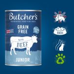 Butcher’s Original Junior to bezzbożowe karmy opracowane z myślą o potrzebach żywieniowych szczeniąt. Produkty z tej linii zostały stworzone tak by zapewnić szczeniakom najlepszy start w dorosłe życie. Wszystkie produkty powstają na bazie naturalnych składników i są zamknięte w opakowaniach przyjaznych środowisku