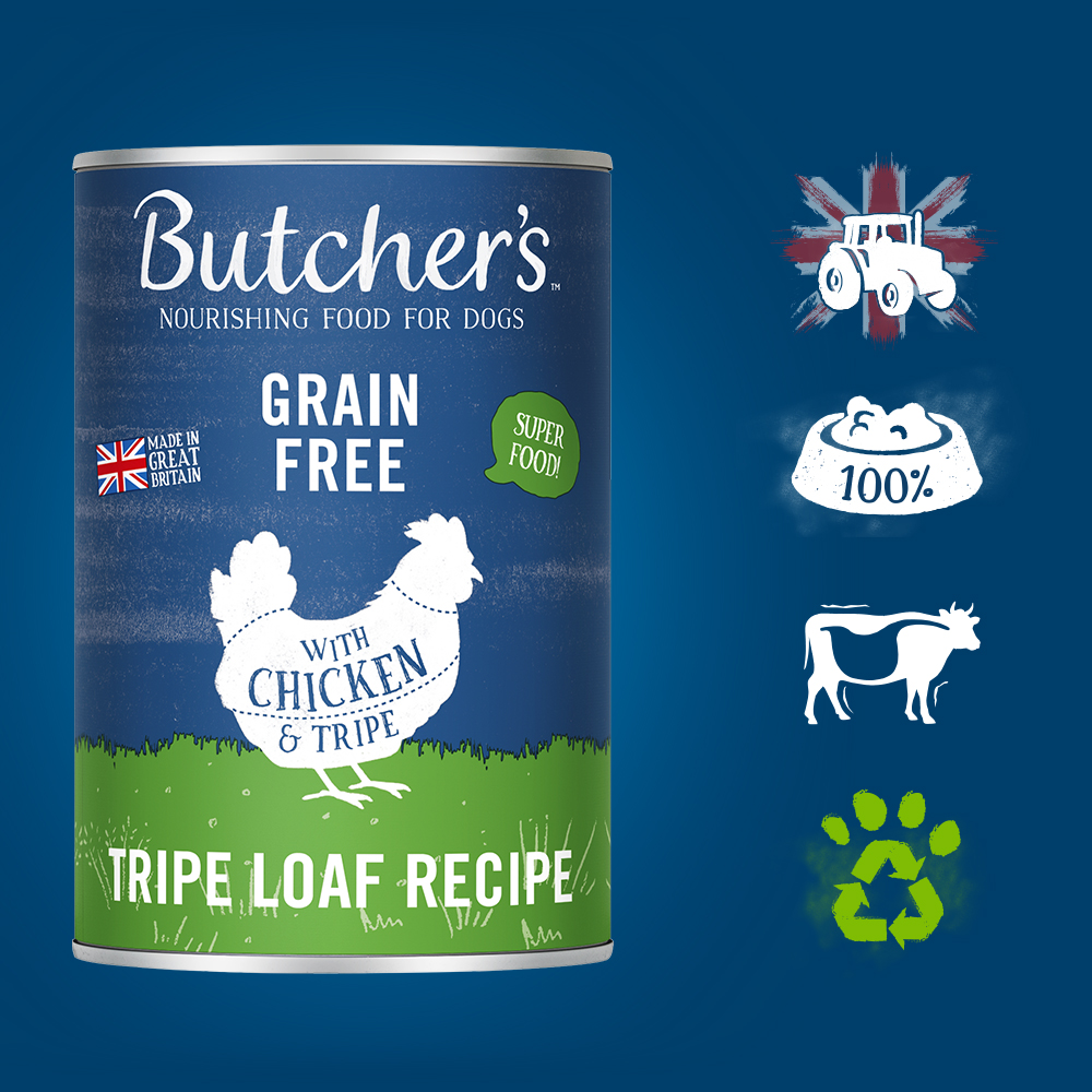 Butcher’s Original Tripe to seria pełnoporcjowych karm wzbogaconych żwaczem wołowym, stworzonych z myślą o codziennych potrzebach czworonogów. Wszystkie produkty powstają na bazie naturalnych składników i są zamknięte w opakowaniach przyjaznych środowisku