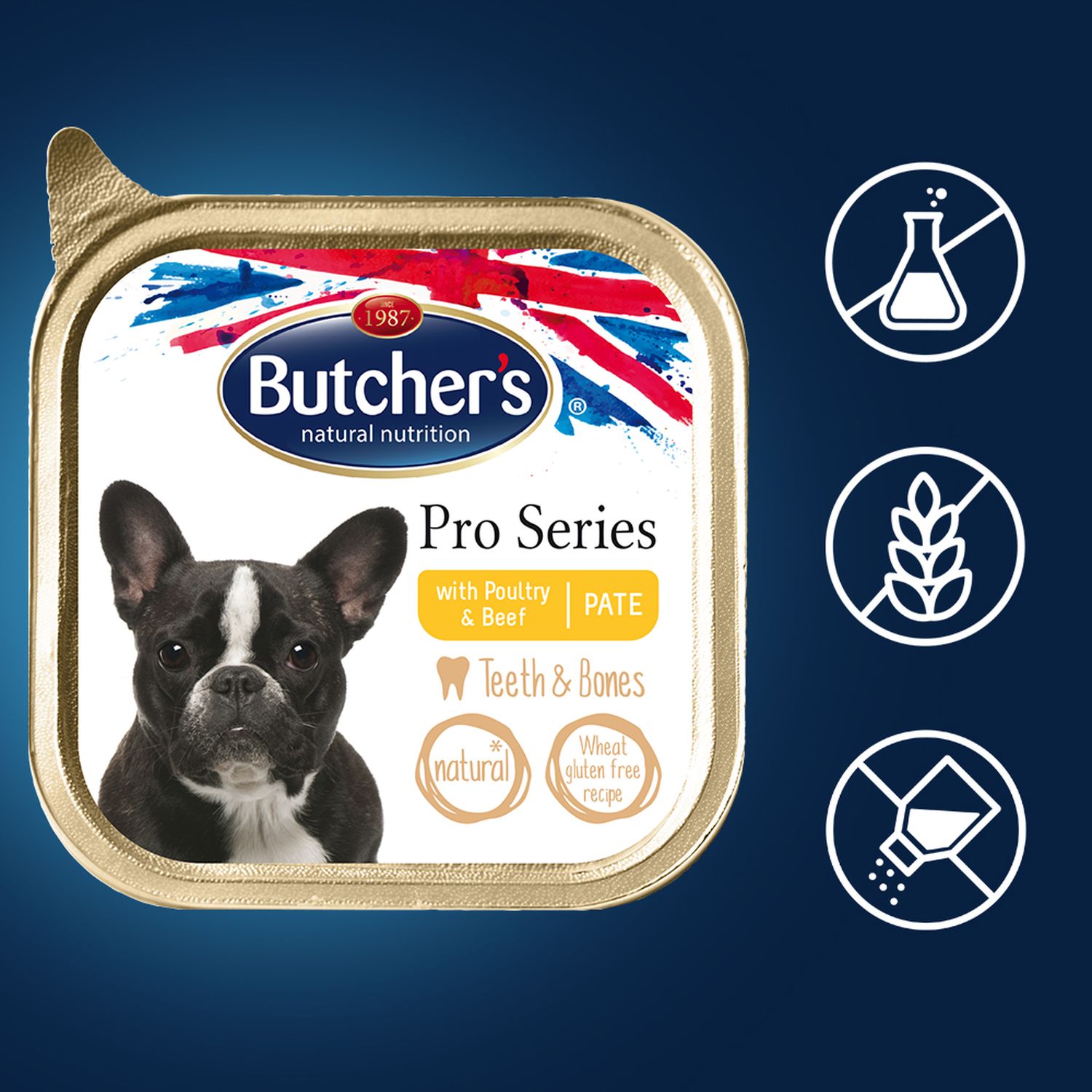 Kompletna karma premium w formie smakowitego pasztetu z najwyższej jakości drobiem i wołowiną, odpowiednia dla psów małych ras. Opracowana przez weterynarzy i dietetyków bezglutenowa receptura bogata w kompletny zestaw minerałów zadba o zdrowy wygląd skóry i sierści.