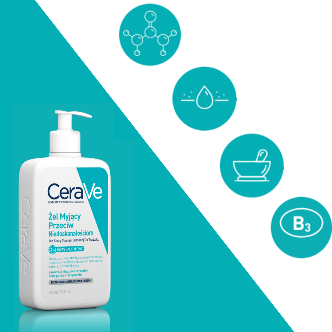 CeraVe Żel Myjący Przeciw Niedoskonałościom, Skóra Tłusta, Trądzikowa 473ml