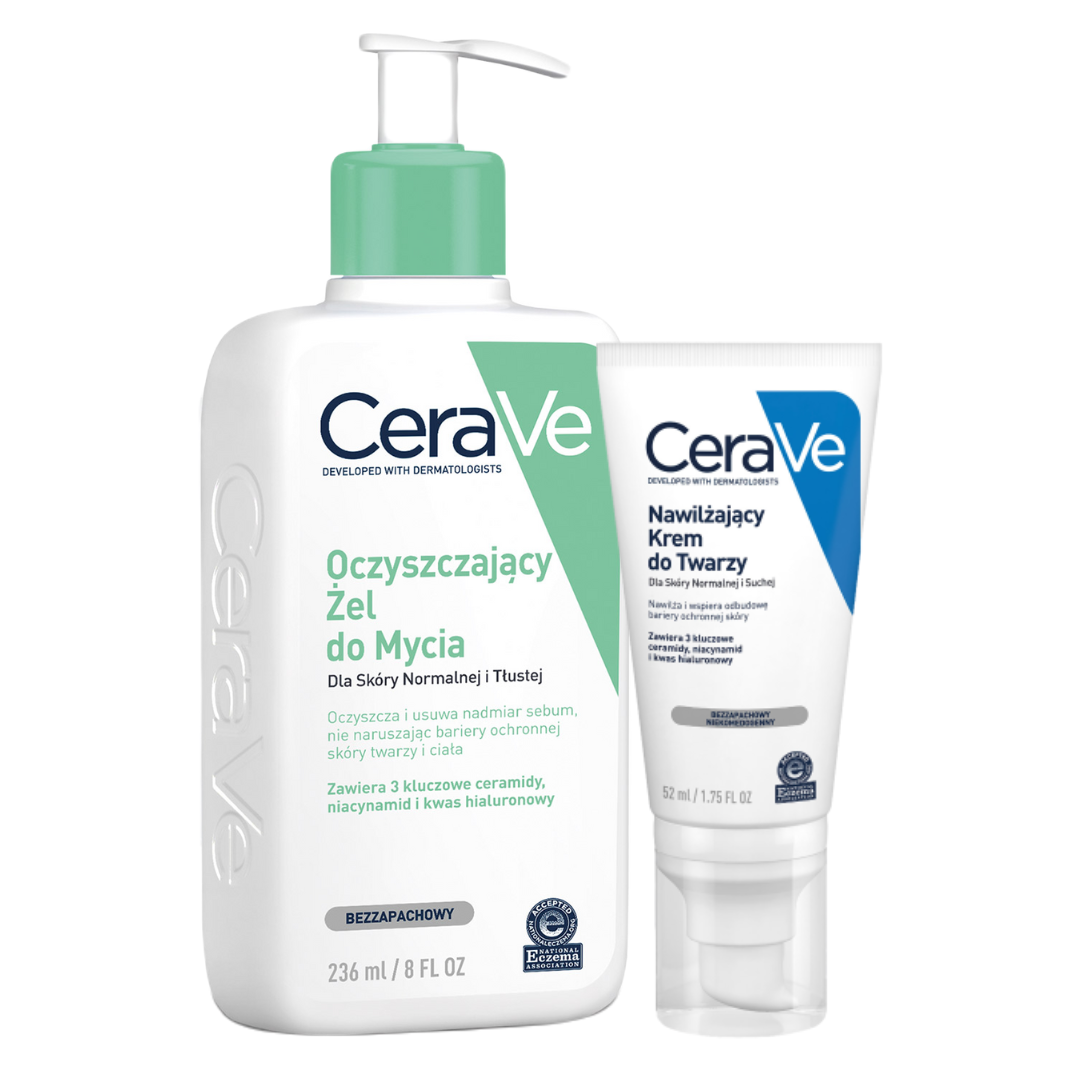 CeraVe Zestaw Świąteczny 2025: oczyszczający żel do mycia 236ml, nawilżający krem do twarzy 52ml