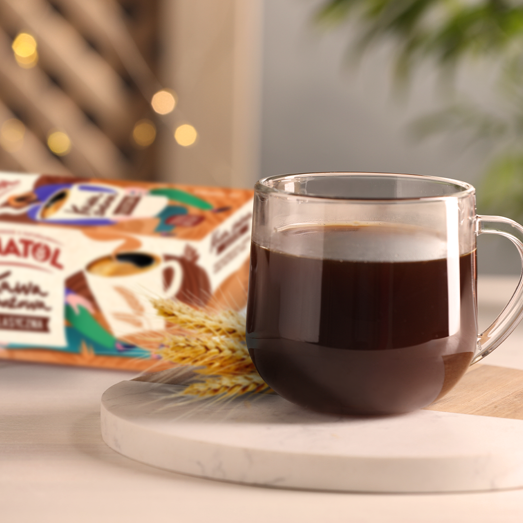 Kawa zbożowa Anatol to wyjątkowa mieszanka prażonych polskich zbóż i cykorii, zamknięta w wygodnych saszetkach do zaparzania. Jej bogaty, pełny smak i niesamowity aromat przywołują magię dziecięcych wspomnień. Naturalny skład w 100% oparty na tradycyjnych składnikach sprawia, że kawa Anatol jest doskonałą alternatywą dla klasycznej kawy, szczególnie dla osób, które z różnych względów unikają kofeiny.