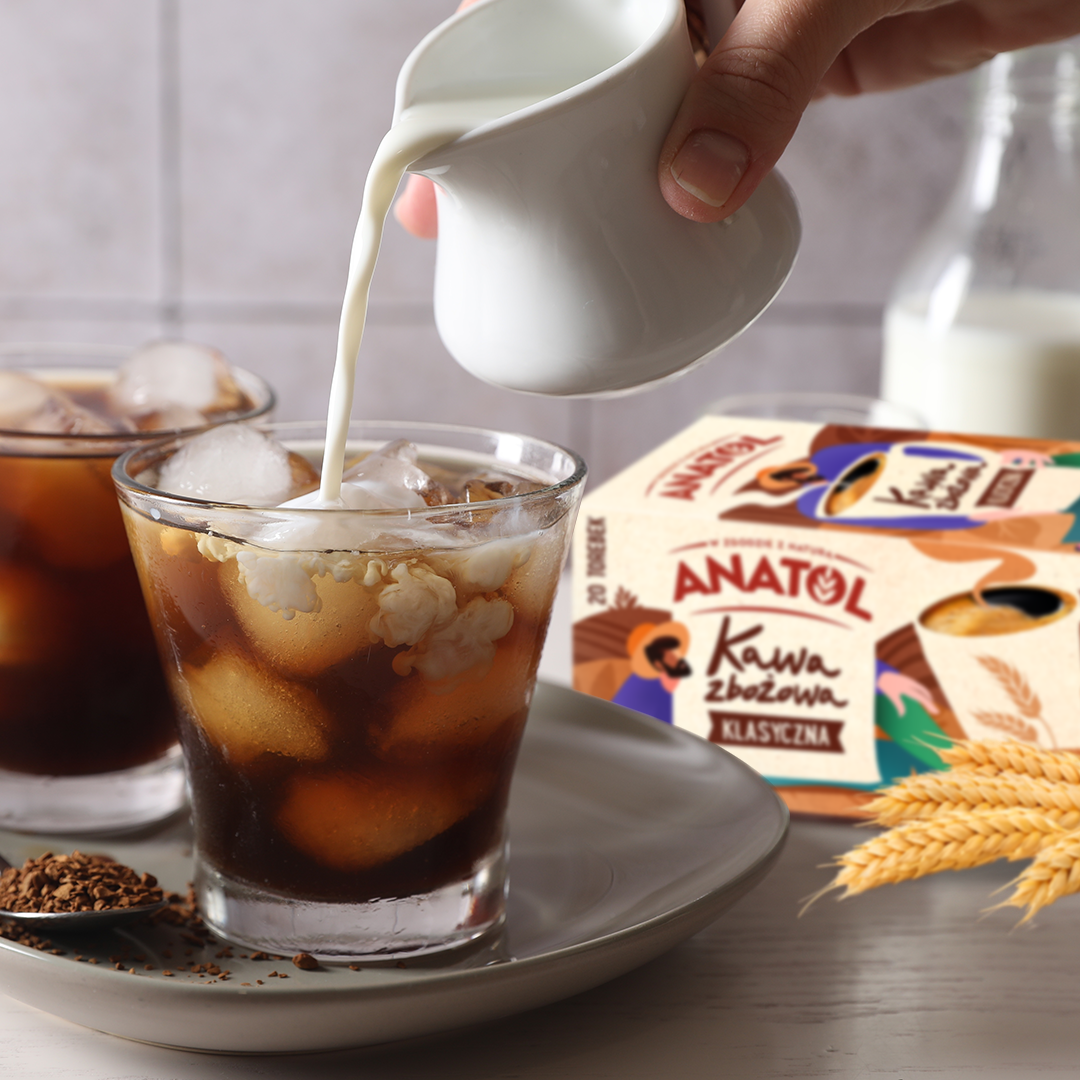 Kawa zbożowa Anatol najlepiej smakuje na ciepło, ale możesz także przygotować ją na zimno jako orzeźwiający napój.