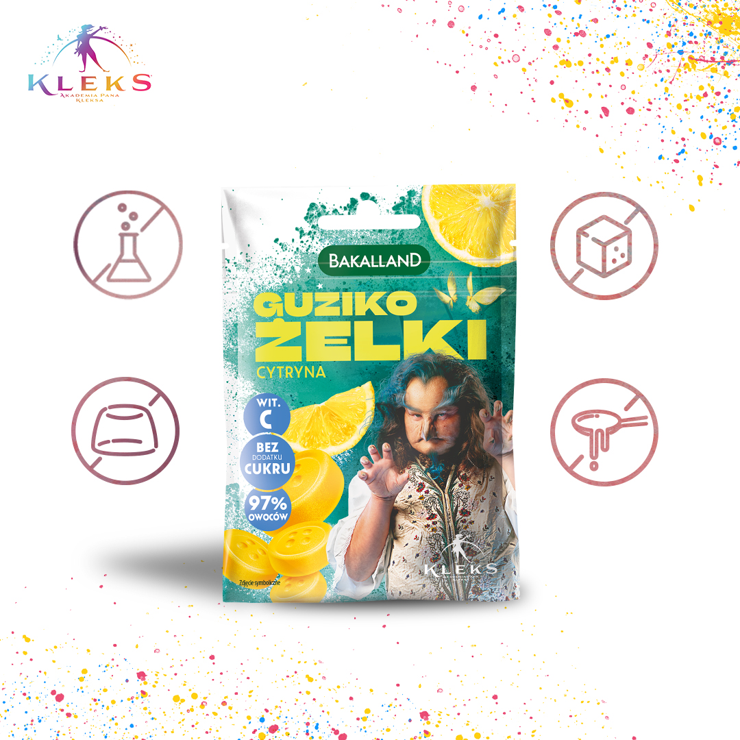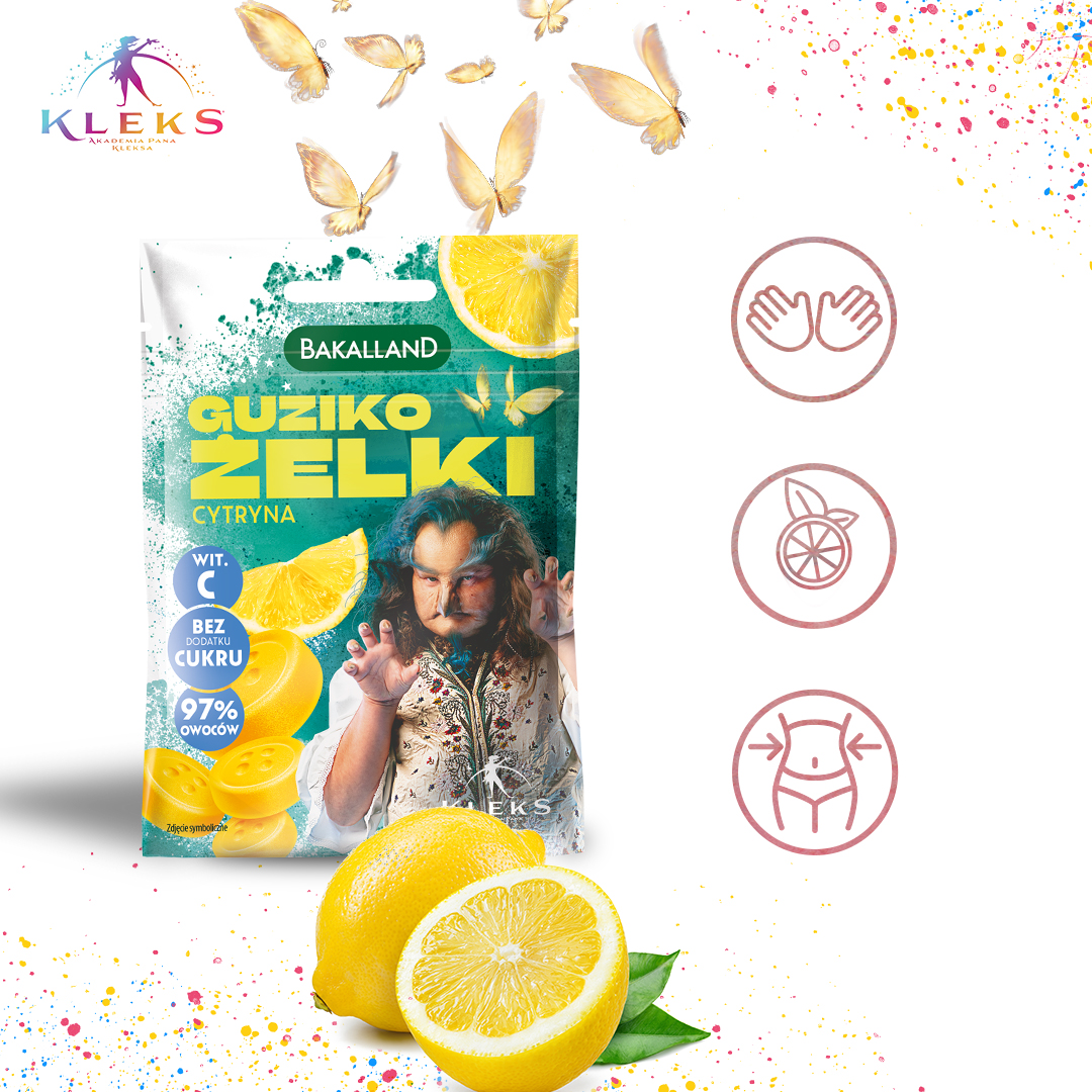 Bakalland Guziko żelki cytrynowe bez cukru bez żelatyny 34g KLEKS