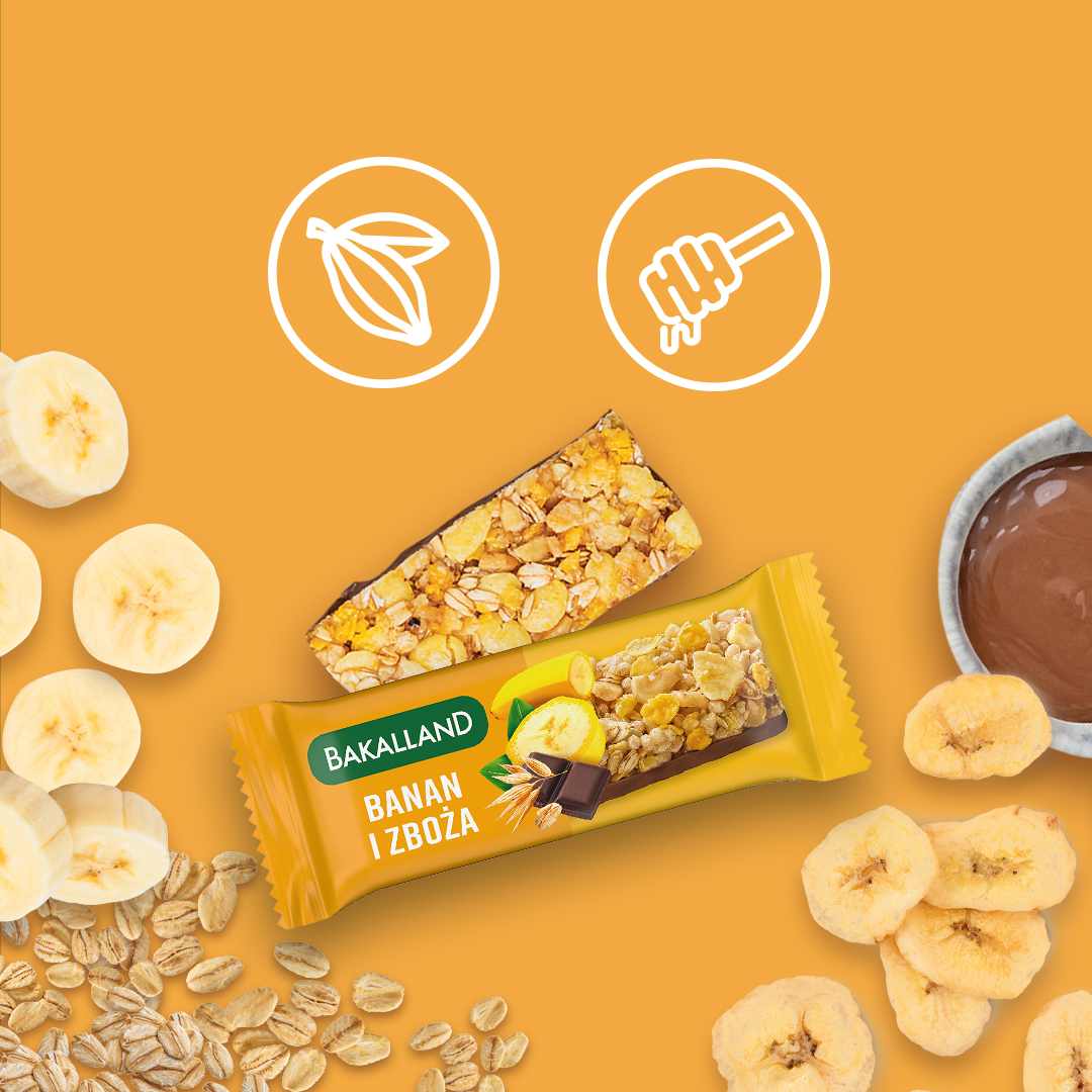 Baton zbożowy Bakalland BA! z bananem to pyszna i zdrowa przekąska, która łączy naturalną słodycz bananów z chrupiącymi polskimi zbożami. To świetny wybór dla tych, którzy szukają alternatywy dla niezdrowych słodyczy. Starannie opracowana receptura pozbawiona syropu glukozowego i tłuszczów utwardzonych sprawia, że możesz cieszyć się wyjątkowym smakiem i wartościami odżywczymi każdego dnia.