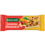 Bakalland BA! Baton zbożowy Żurawina i Pomarańcza to doskonała alternatywa dla niezdrowych przekąsek. Łączy w sobie intensywny smak żurawiny i aromatyczną nutę pomarańczy, tworząc pełną energii i smaku przekąskę. Został stworzony na bazie najwyższej jakości suszonej żurawiny oraz polskich zbóż.