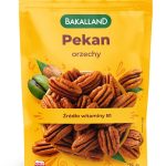 Orzechy pekan Bakalland to bardzo popularne orzechy w Stanach Zjednoczonych. Nic dziwnego, ponieważ to właśnie Ameryka Północna jest ojczyzną orzesznika jadalnego, czyli drzewa, które rodzi te duże i oryginalne bakalie. Orzechy pekan wielu osobom przypominają znane w Polsce orzechy włoskie, jednak gdy poszukamy podobieństw i różnic to zauważymy, że orzechy pekan są mniej pofalowane, za to są bardziej podłużne i płaskie. Mają też więcej wartości odżywczych. W smaku łączą lekko słodkie nuty z tymi lekko gorzkimi. Są naturalnym źródłem witaminy B1, która przyczynia się do utrzymania prawidłowego metabolizmu energetycznego oraz pomaga w funkcjonowaniu układu nerwowego.