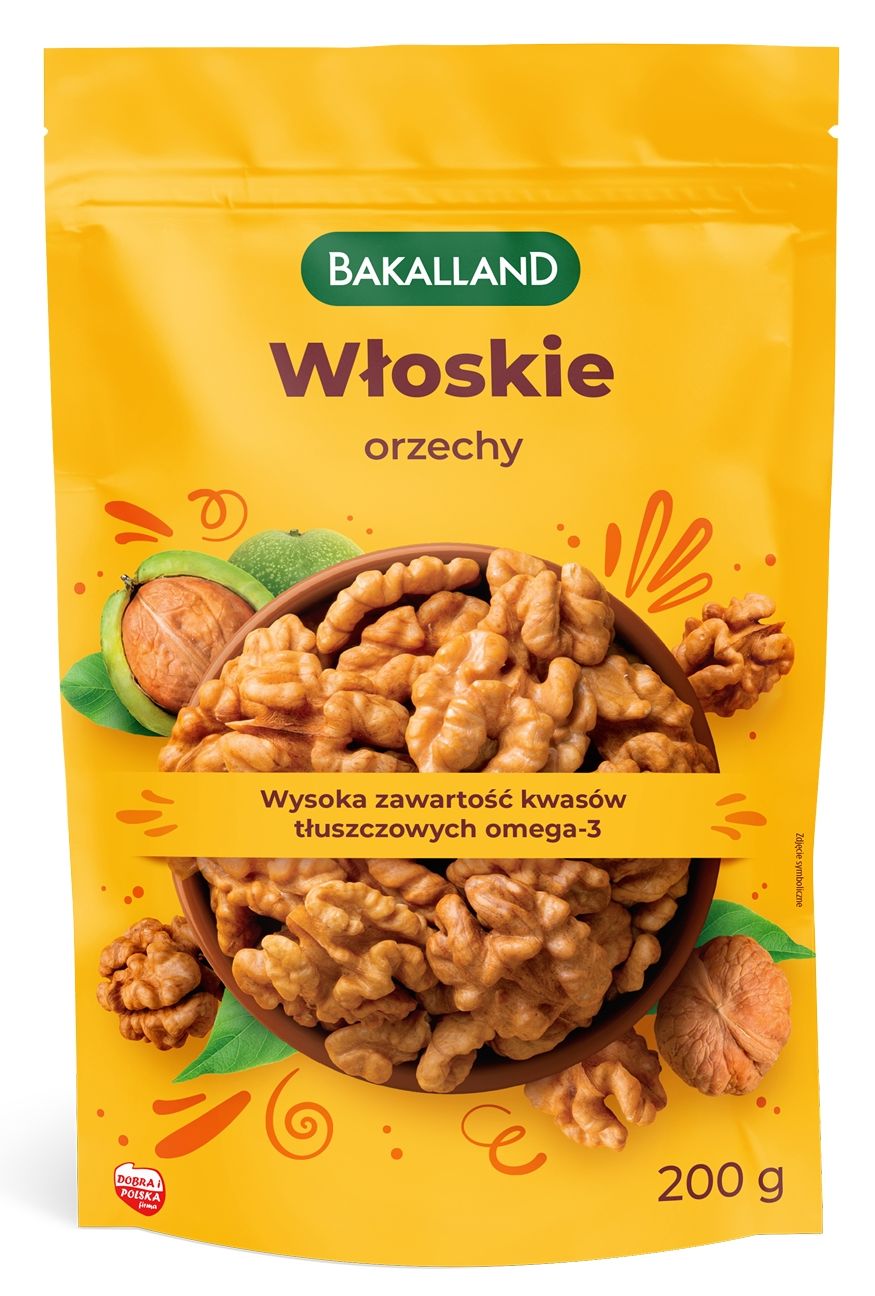 Orzechy włoskie Bakalland to najwyższej jakości orzechy, które charakteryzują się dużą zawartością kwasów tłuszczowych omega-3. W Polsce te orzechy zbiera się na początku jesieni, rosną na drzewach liściastych, które są jednymi z najbardziej popularnych drzew w naszym kraju. Cenione są za swoją długowieczność – dożywają nawet 500 lat. Jeśli zastanawiasz się, skąd wzięła się nazwa tego orzecha, to historia jest ciekawa, jednak nie ma nic wspólnego z Włochami. Te- bakalie dotarły do Polski z południowych części Karpat, które leżą na terenach Rumunii. Ten rejon historycznie nazywany był Włoszczyzną i dlatego orzech włoski zyskał tę właśnie nazwę. Bakalie te wyglądem przypominają mózg człowieka i mają na niego dobry wpływ. Orzechy te poleca się jeść osobom, które się uczą lub pracują umysłowo, ponieważ pomagają poprawić koncentrację oraz pracę mózgu. Orzechy włoskie to doskonałe źródło wielu wartościowych składników odżywczych. Warto je włączyć do swojego codziennego jadłospisu. Orzechy włoskie są dość kaloryczne, dlatego należy odmierzać zjadaną porcję, by nie przekroczyć swojego dziennego zapotrzebowania kalorycznego.