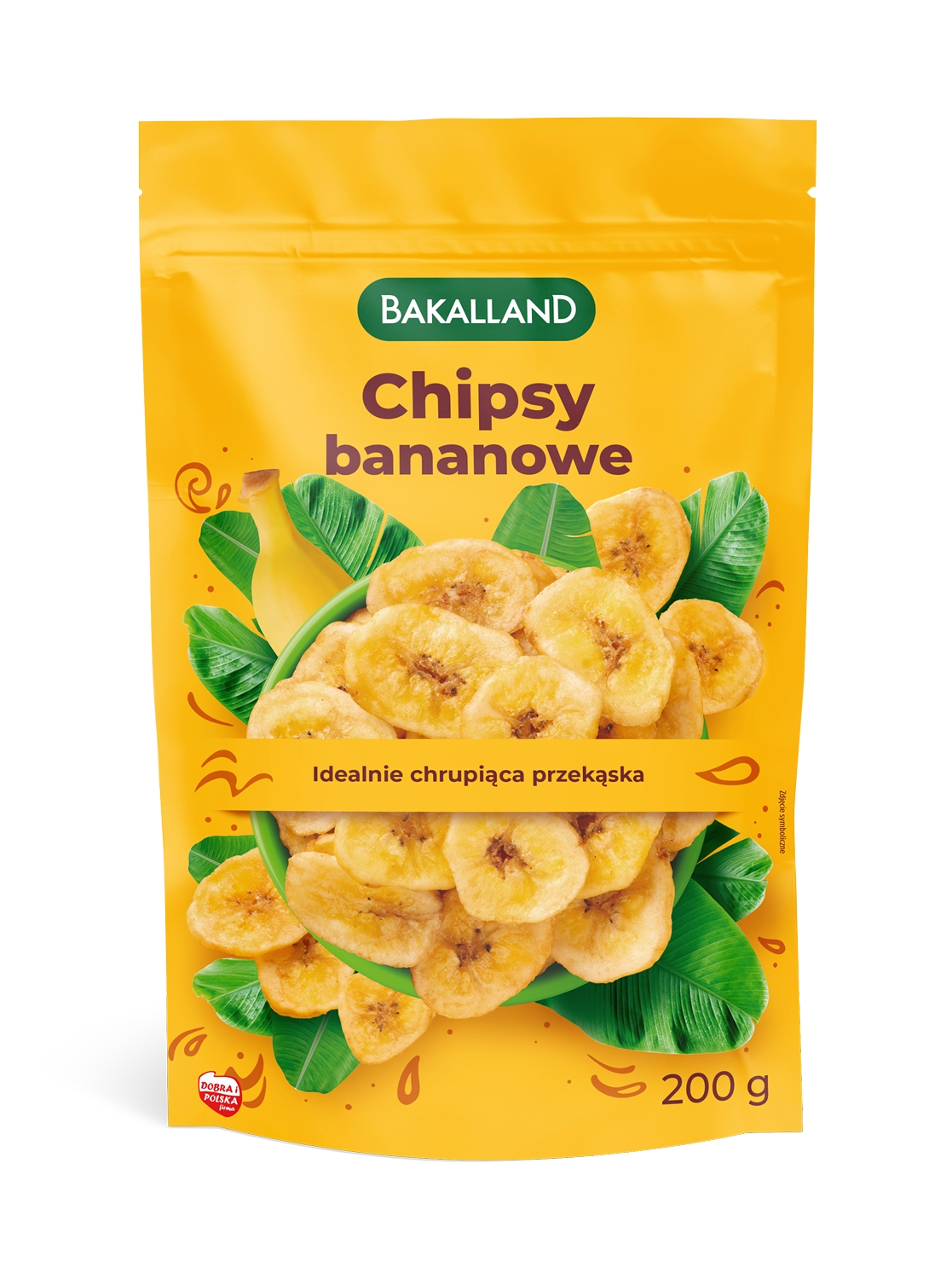 Chipsy bananowe Bakalland są idealnym substytutem niezdrowych przekąsek. Świetnie sprawdzają się w mieszankach bakaliowych bądź jako dodatek do porannej porcji musli. Chipsy bananowe posiadają prosty skład zawierający głównie banany, które bogate są w błonnik pokarmowy. Banany są owocami byliny, nazywanej potocznie bananowcem, która osiąga nawet do 15 metrów wysokości. Rośliny do prawidłowego rozwoju potrzebują klimatu ciepłego i wilgotnego, właśnie dlatego plantacje te występują głównie w klimacie tropikalnym. Wiodącym producentem bananów są Filipiny. Owoce uprawiane są również w Indiach, Brazylii, czy w Ekwadorze.