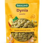 Bakalland Pestki dyni to najwyższej jakości ziarna, które mają ciemnozielony kolor oraz charakteryzują się dużą chrupkością. Są pozbawione gorzkich nut, a ich smak jest delikatny. Pestki dyni marki Bakalland mają wysoką zawartość białka, dzięki czemu są cenioną i pożywną przekąską, a także dodatkiem do wielu dań. Mają prosty skład, który zawiera jedynie pestki dyni, bez żadnych dodatków i ulepszaczy. Produkt jest szczelnie zapakowany, dzięki czemu zachowuje swoją chrupkość i świeżość. Pestki dyni marki Bakalland są już wyłuskane, co oznacza, że są gotowe do spożycia. Zaraz po otwarciu opakowania możesz je zjeść lub dodać do swojego dania.