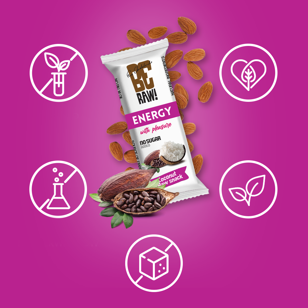 Strona główna / Sklep / Foodwell / BeRaw / Batony Energy / Baton energetyczny BeRAW Energy Coconut surowe kakao kokos prosty skład 40g