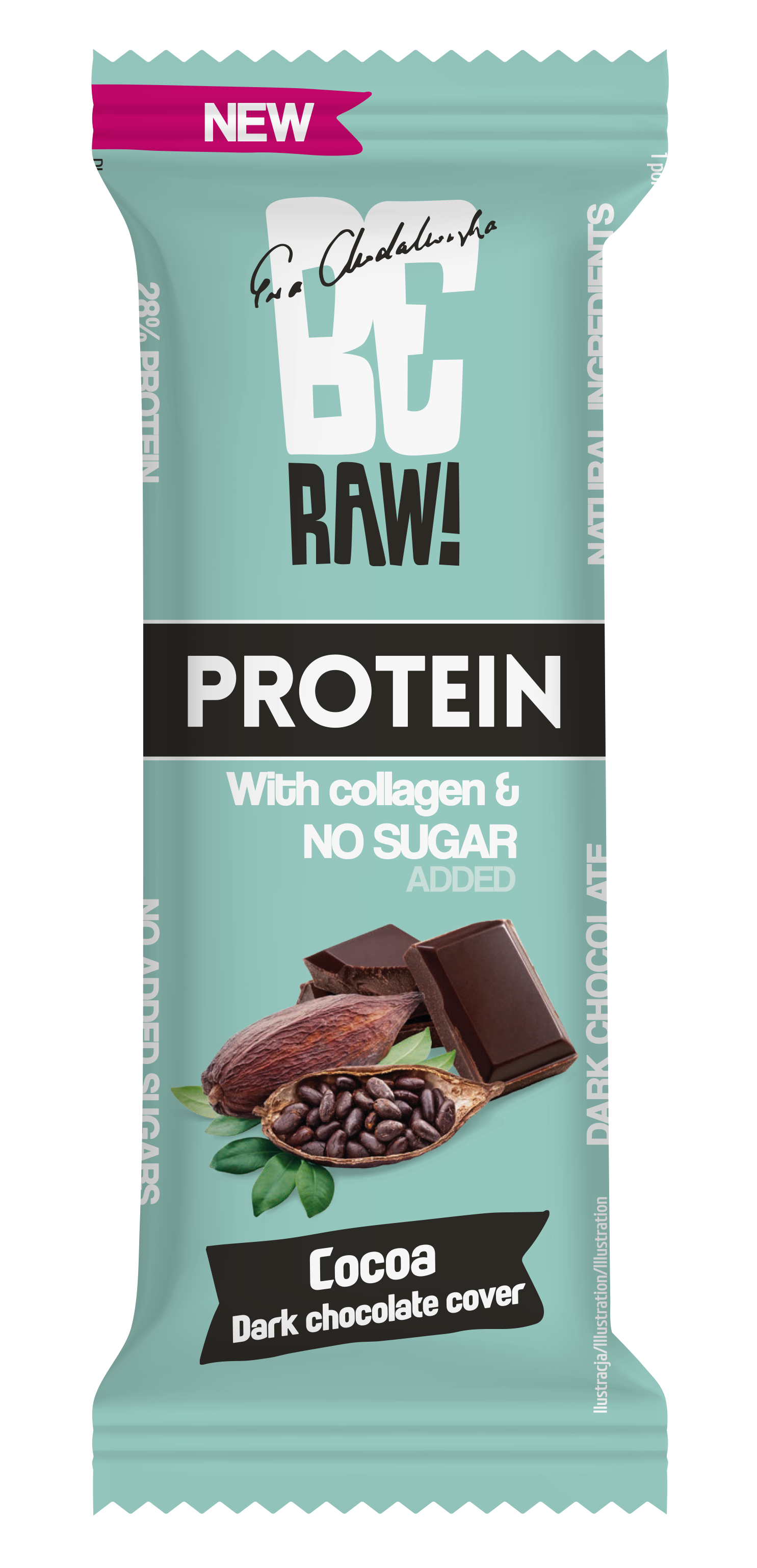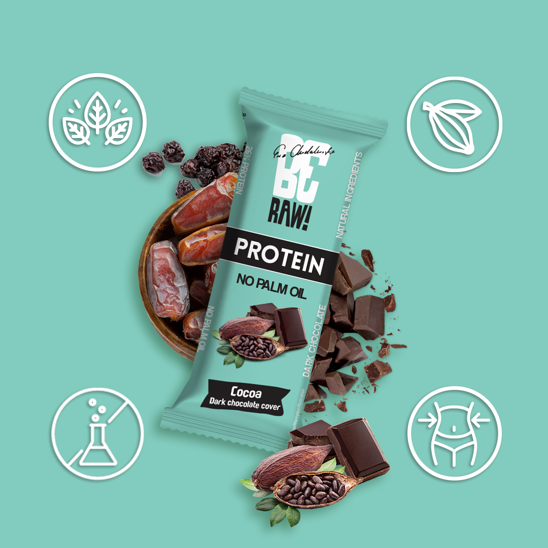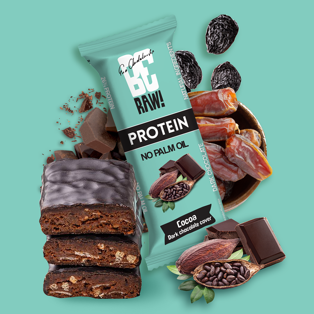 BeRAW Baton Protein 26% Cocoa 40 g – baton białkowy z kakao oblany gorzką czekoladą. Ten wyśmienity baton ma bogaty smak kakao, wzmocniony polewą z ciemnej czekolady, dzięki czemu jest rozkoszą dla miłośników czekolady. Jego konsystencja zapewnia satysfakcjonujący kęs bez nadmiernej gęstości, zapewniając przyjemne doznania podczas jedzenia. Wygląd batonu jest atrakcyjny wizualnie dzięki ciemnobrązowemu kolorowi i gładkiej polewie czekoladowej, która otacza cały batonik. Niezależnie od tego, czy szukasz wygodnej przekąski w biegu, czy zastrzyku białka po treningu, baton BeRAW Baton Protein 26% Cocoa 40 g to fantastyczny wybór.