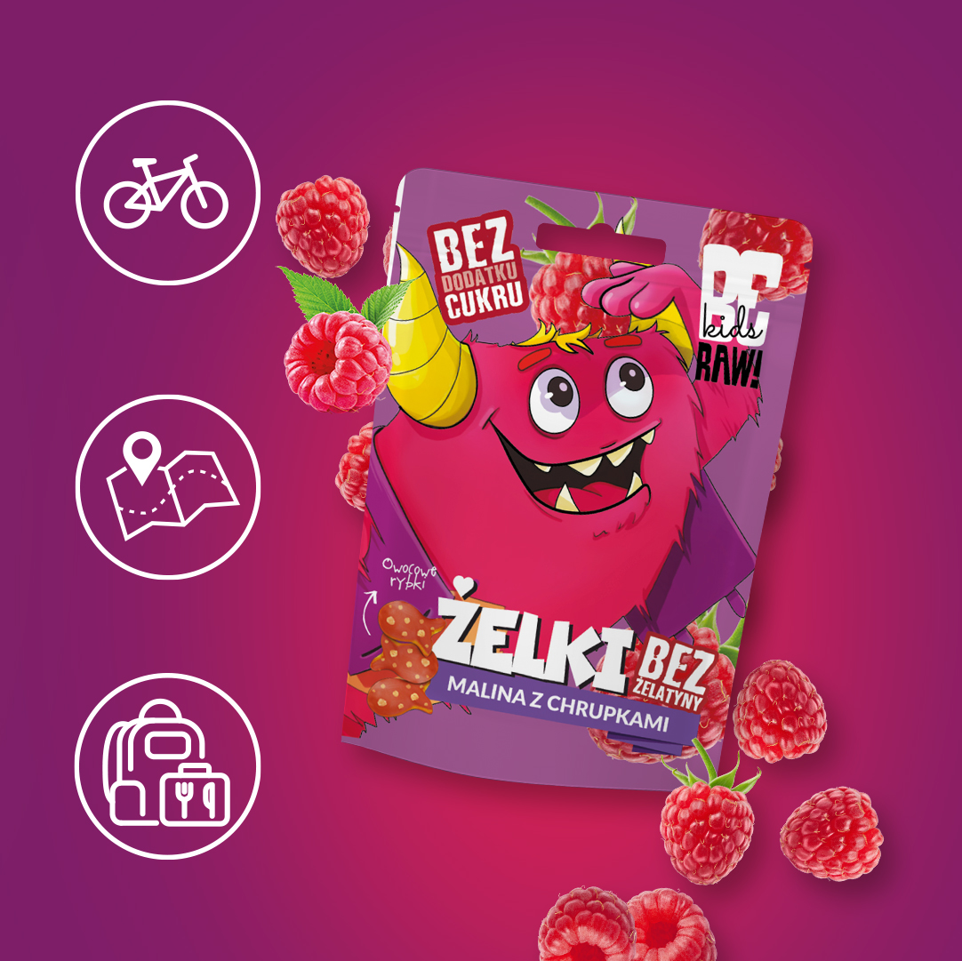 Żelki BeRAW Kids Malina z chrupkami ryżowymi