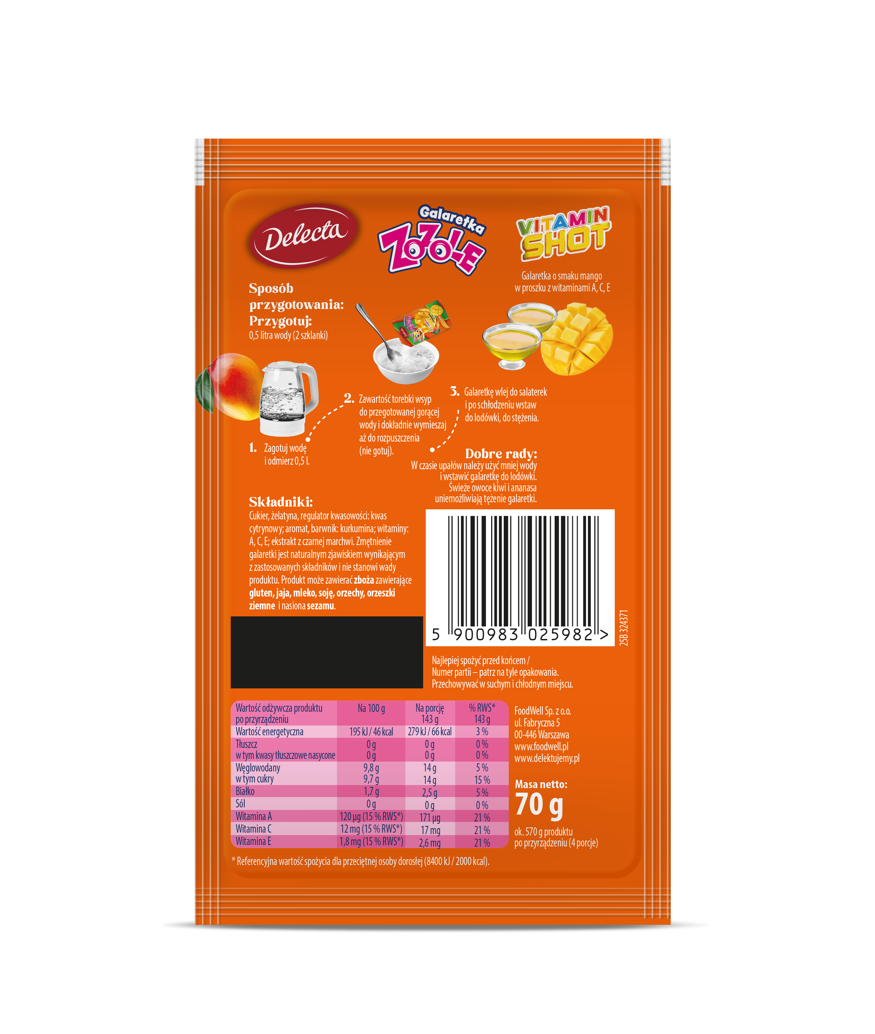 Delecta Galaretka Vitamin Shot Mango ed. ZOZOLE 70 g – nowość