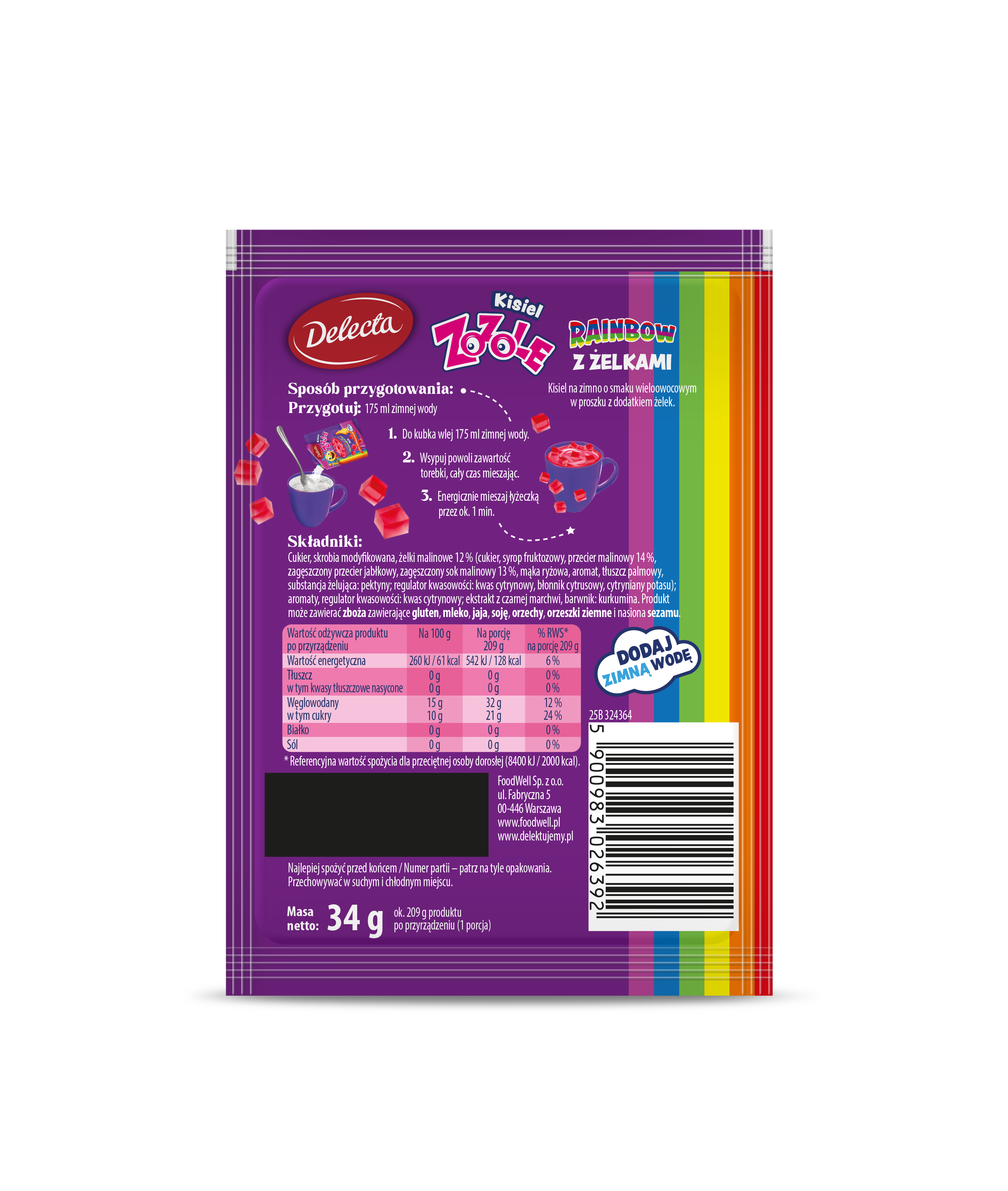 Delecta OK Kisiel RAINBOW ed. ZOZOLE – z żelkami na zimno 34 g – nowość