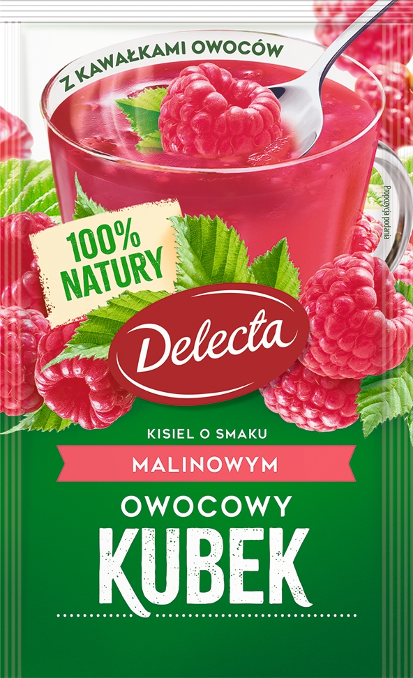 Kisiel Instant Owocowy Kubek malinowy Delecta 30g z kawałkami owoców