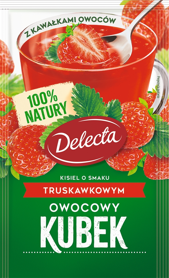 Kisiel Instant Owocowy Kubek truskawkowy Delecta 30g z kawałkami owoców