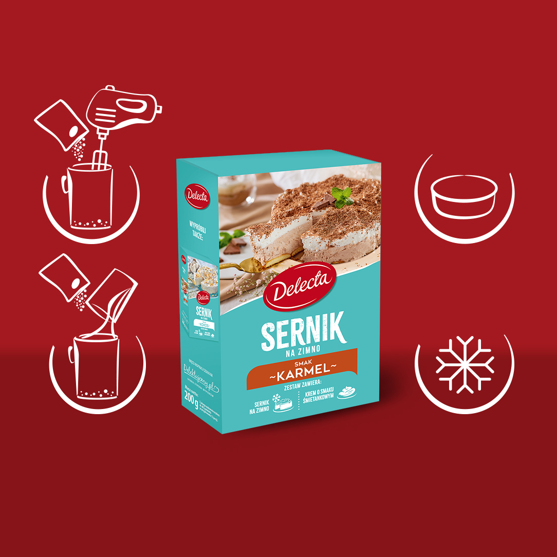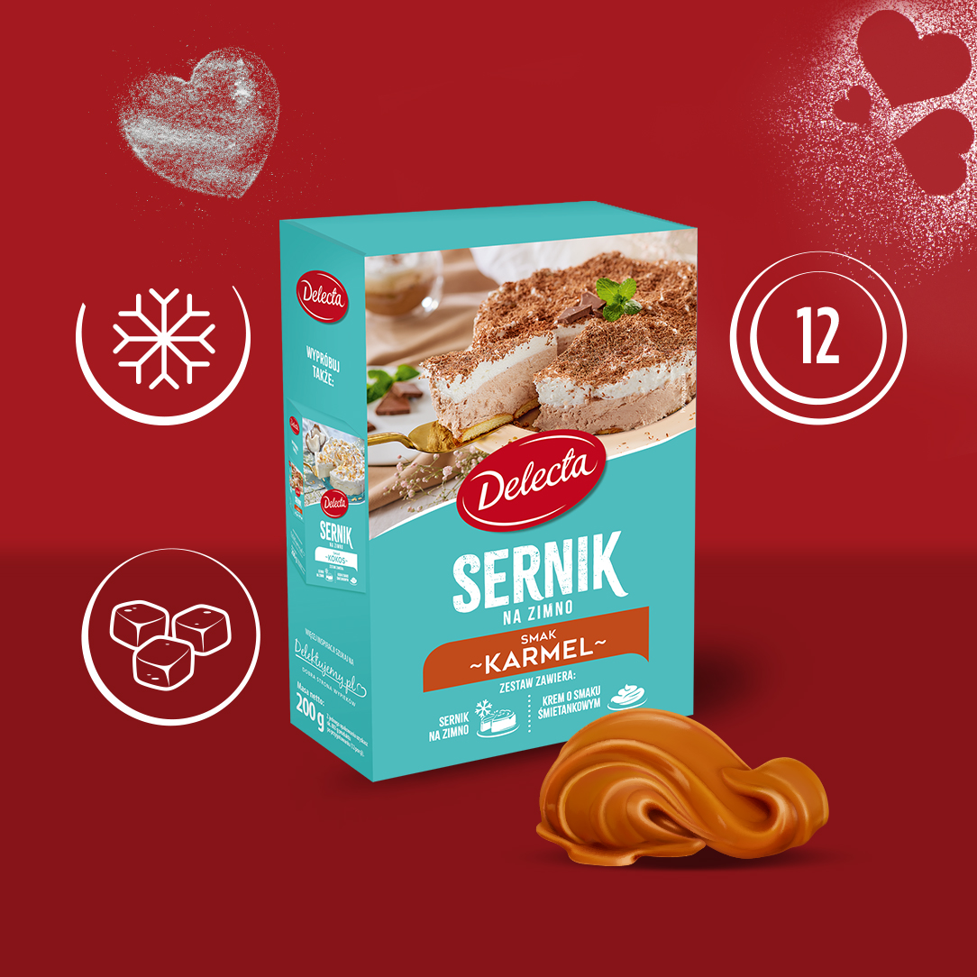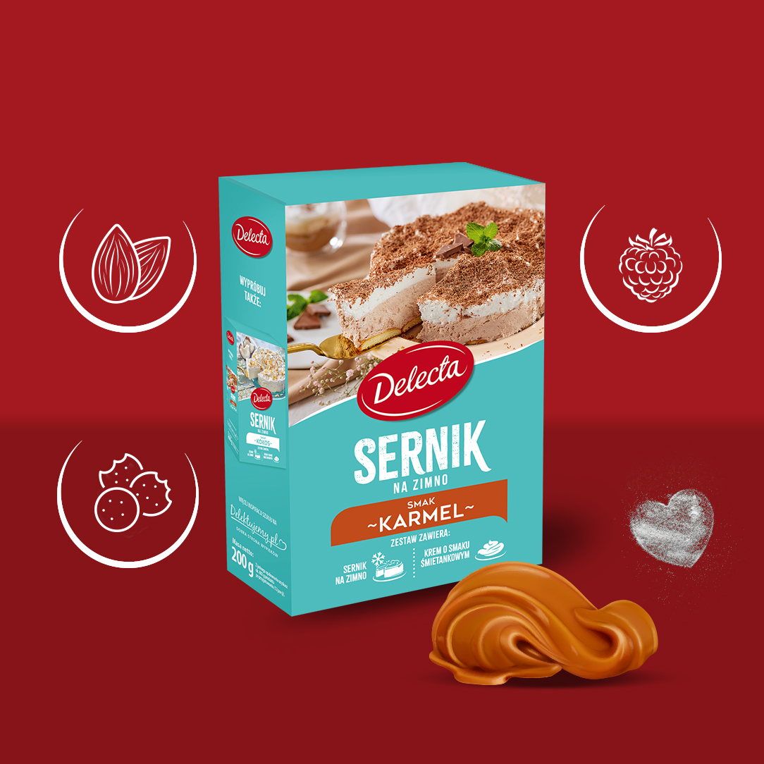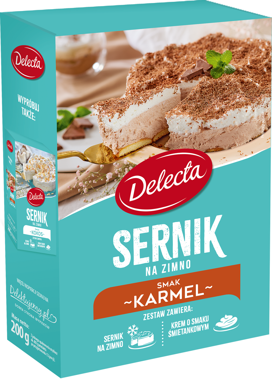 Ciasto Sernik na zimno smak karmelowy Delecta 200g puszysty z kremem