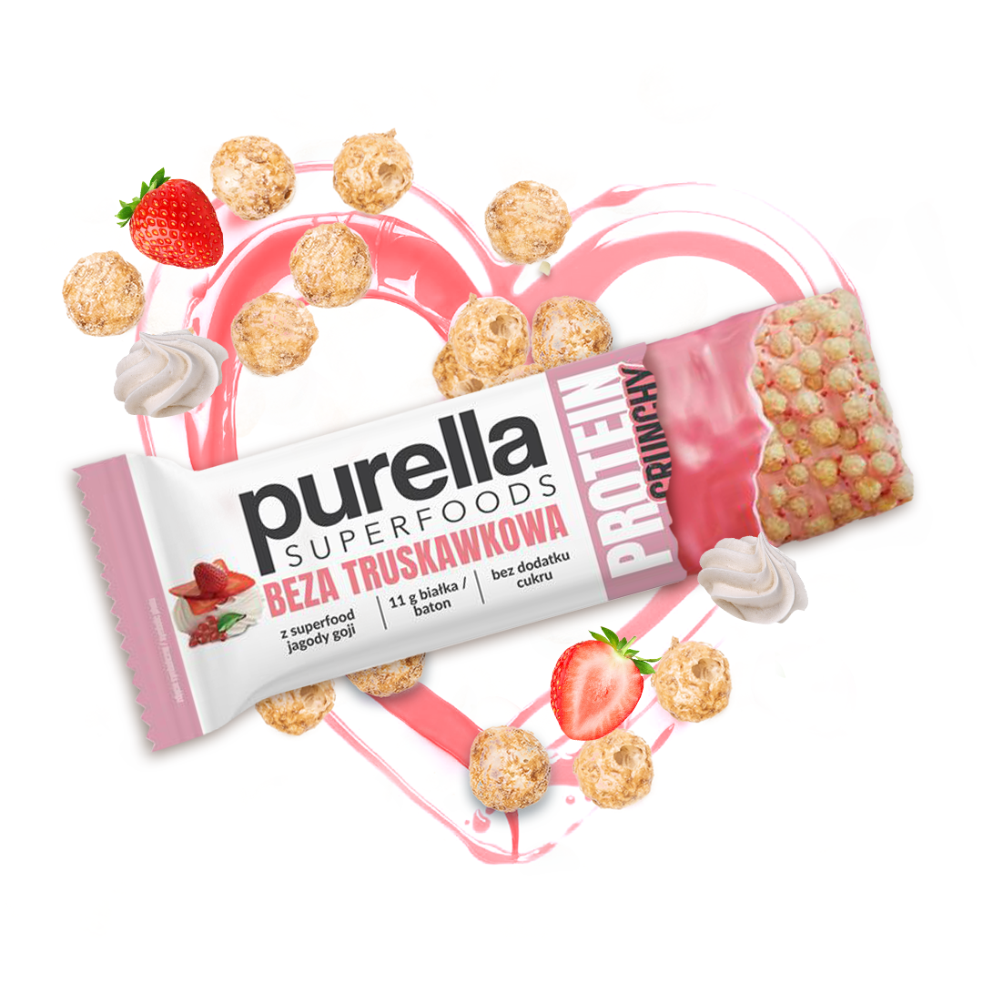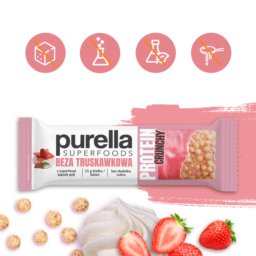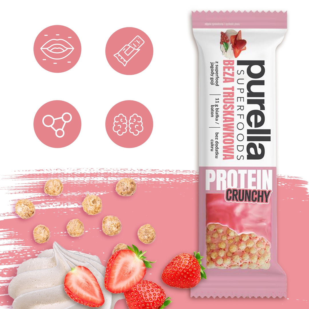 Baton Proteinowy Purella Beza Truskawkowa – chrupiąca struktura i wyjątkowy smak