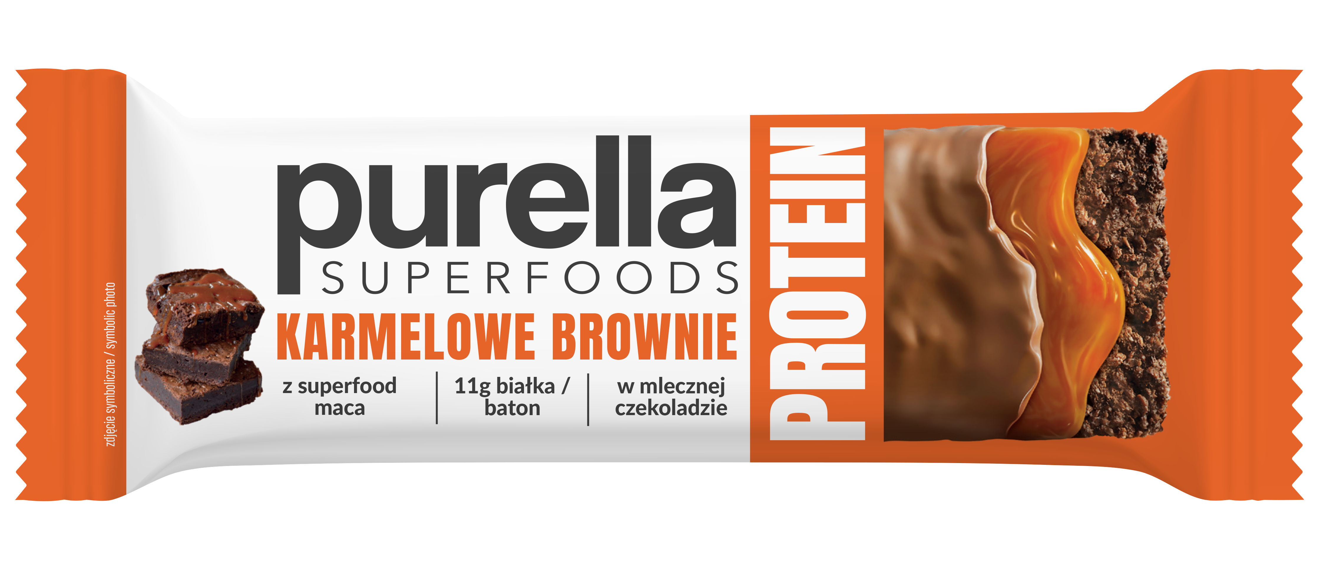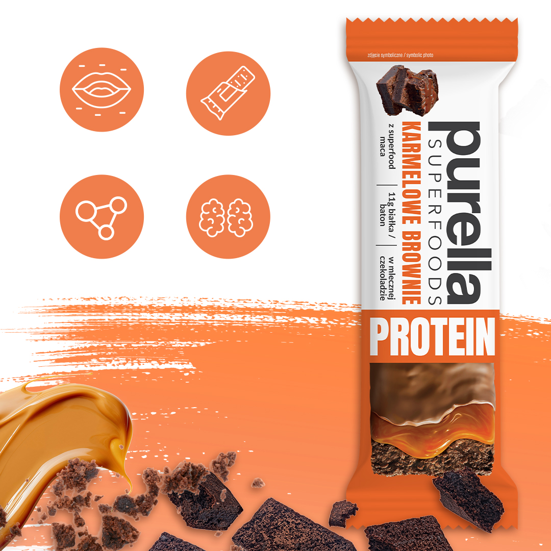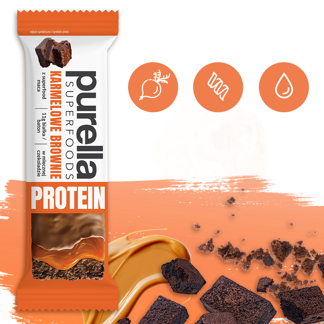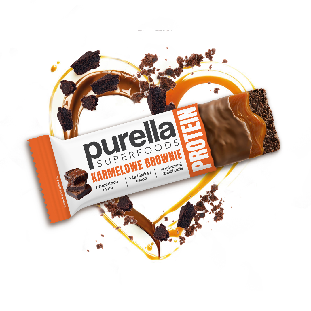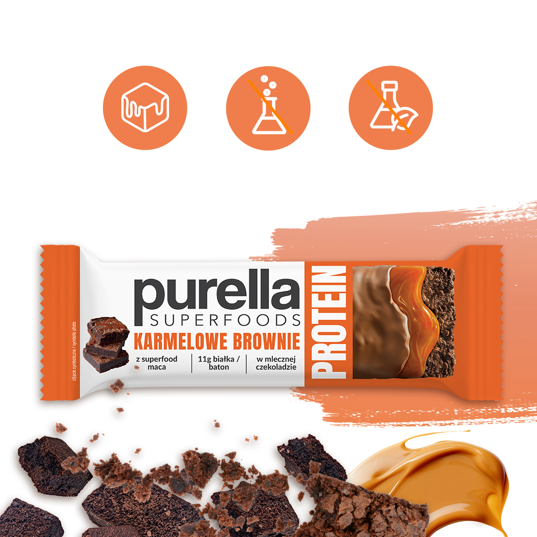 Baton proteinowy Purella Superfoods Karmelowe Brownie 11g białka 45g