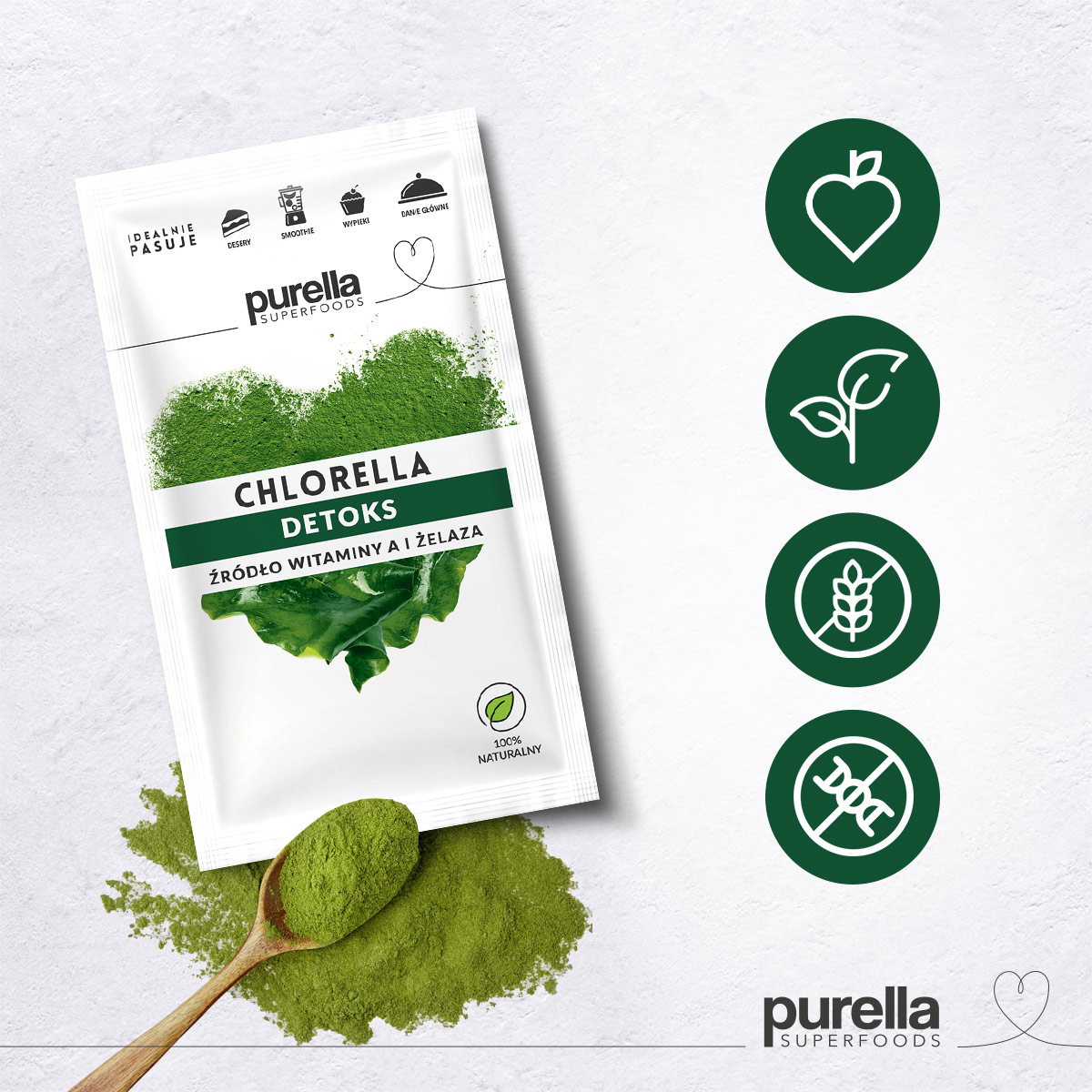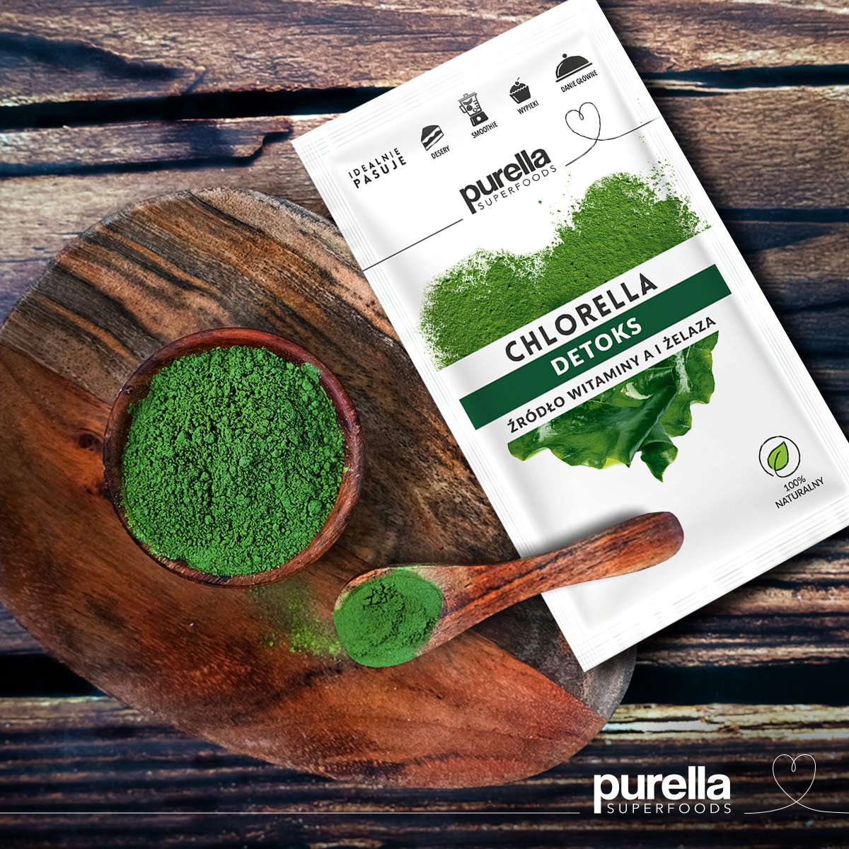 Chlorella sproszkowana oczyszczanie wege Purella Superfoods 21g