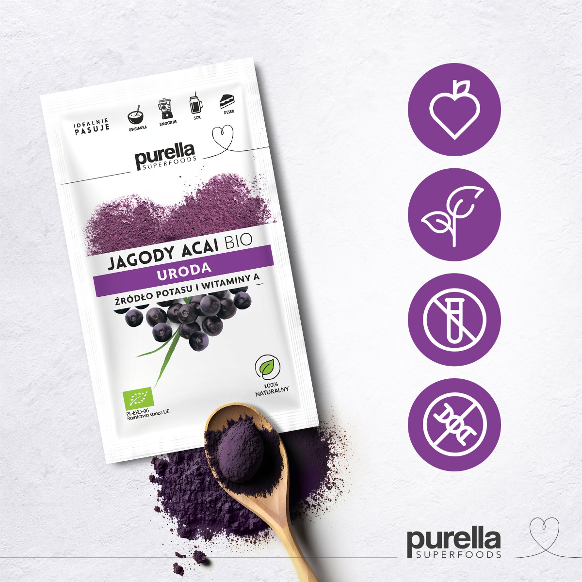 - 2 łyżeczki Jagód Acai Purella