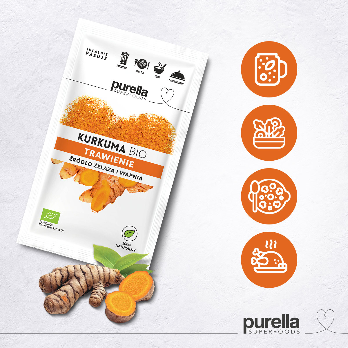 Odkryj Purella Superfoods Kurkuma BIO – naturalny sposób na wsparcie zdrowia układu trawiennego oraz ogólnej kondycji organizmu. Idealny wybór dla osób dbających o zdrowie i poszukujących naturalnych, bio składników w codziennej diecie.