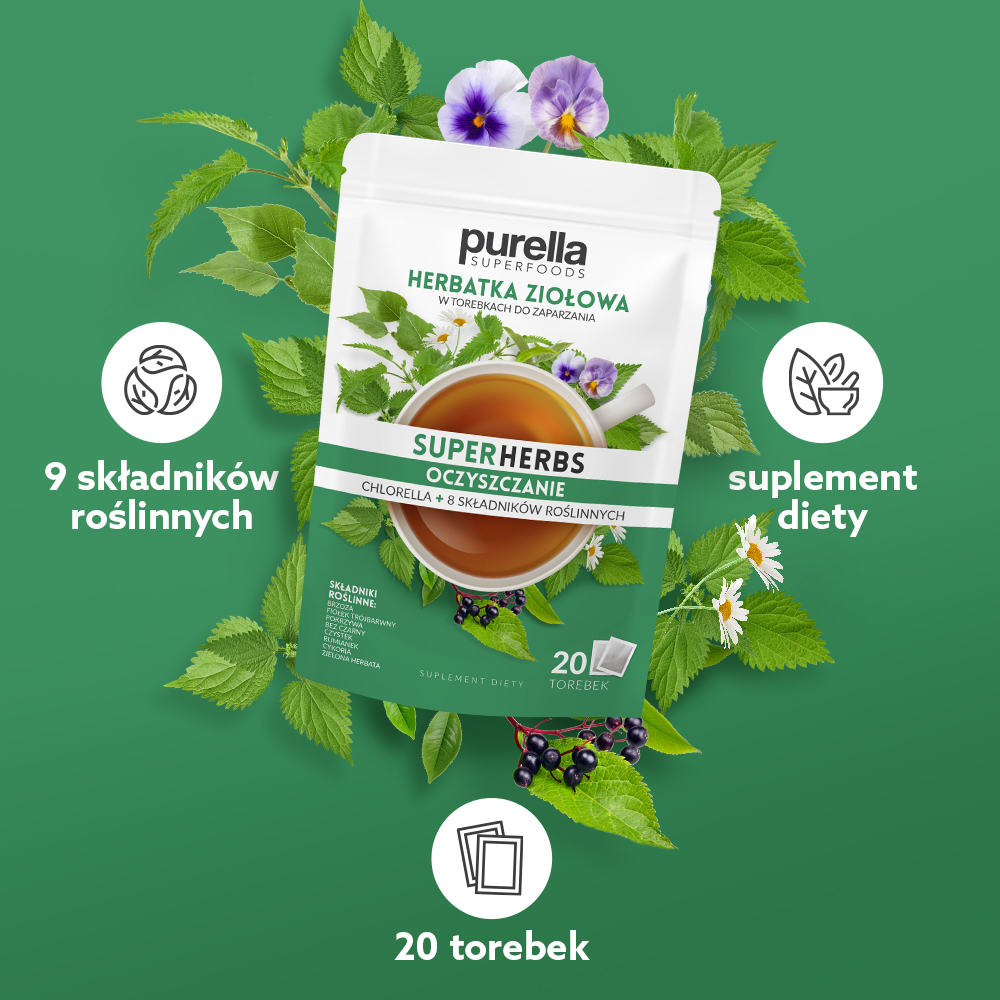 Herbatka ziołowa Oczyszczanie Purella Superfoods Superherbs 20 saszetek 35g