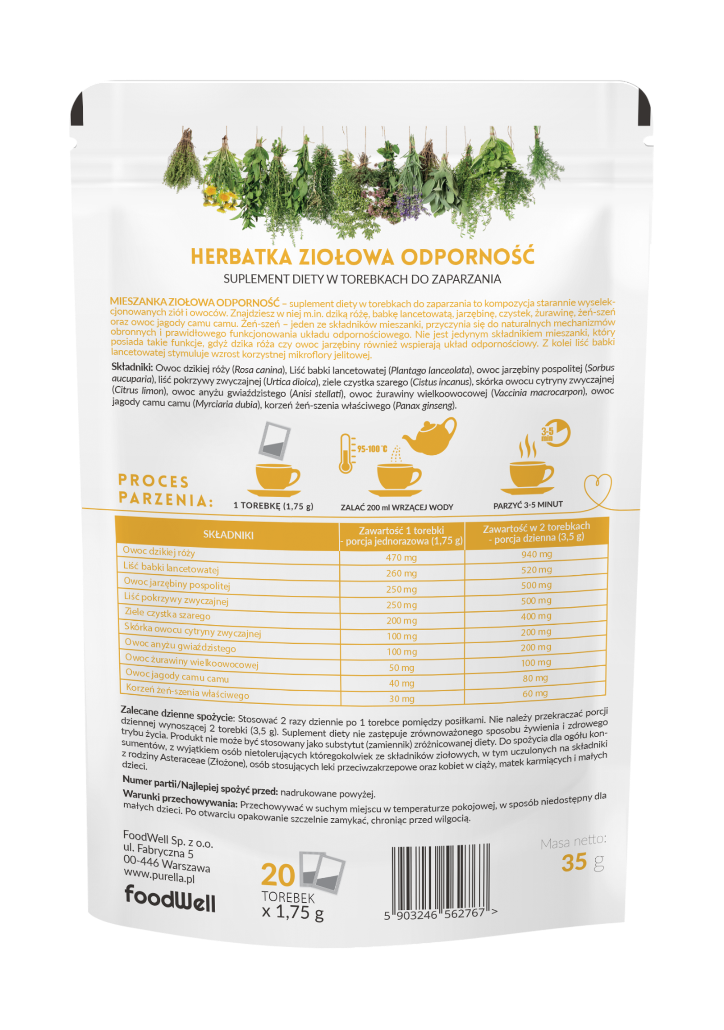 Herbatka ziołowa Odporność Purella Superfoods Superherbs 20 saszetek 35g