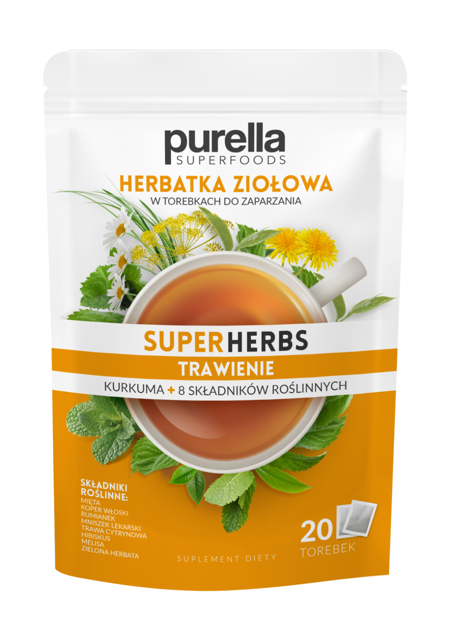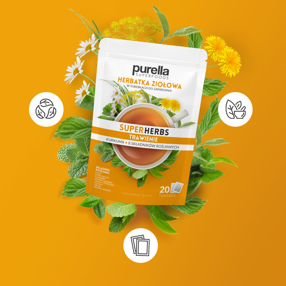 Herbatka ziołowa Trawienie Purella Superfoods Superherbs 20 saszetek 35g