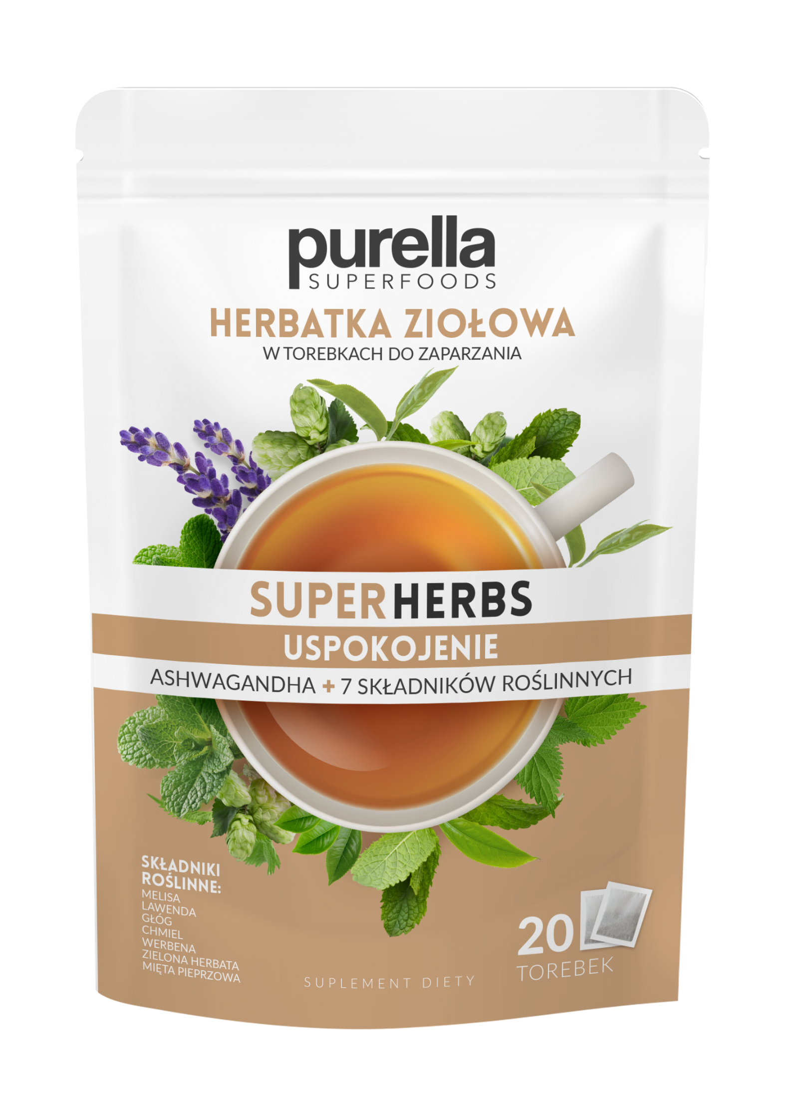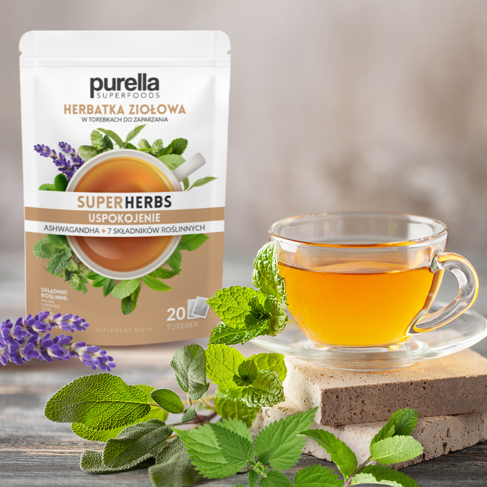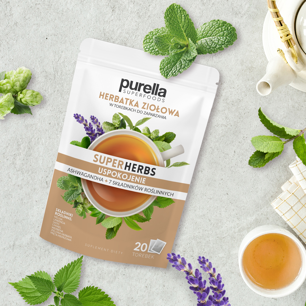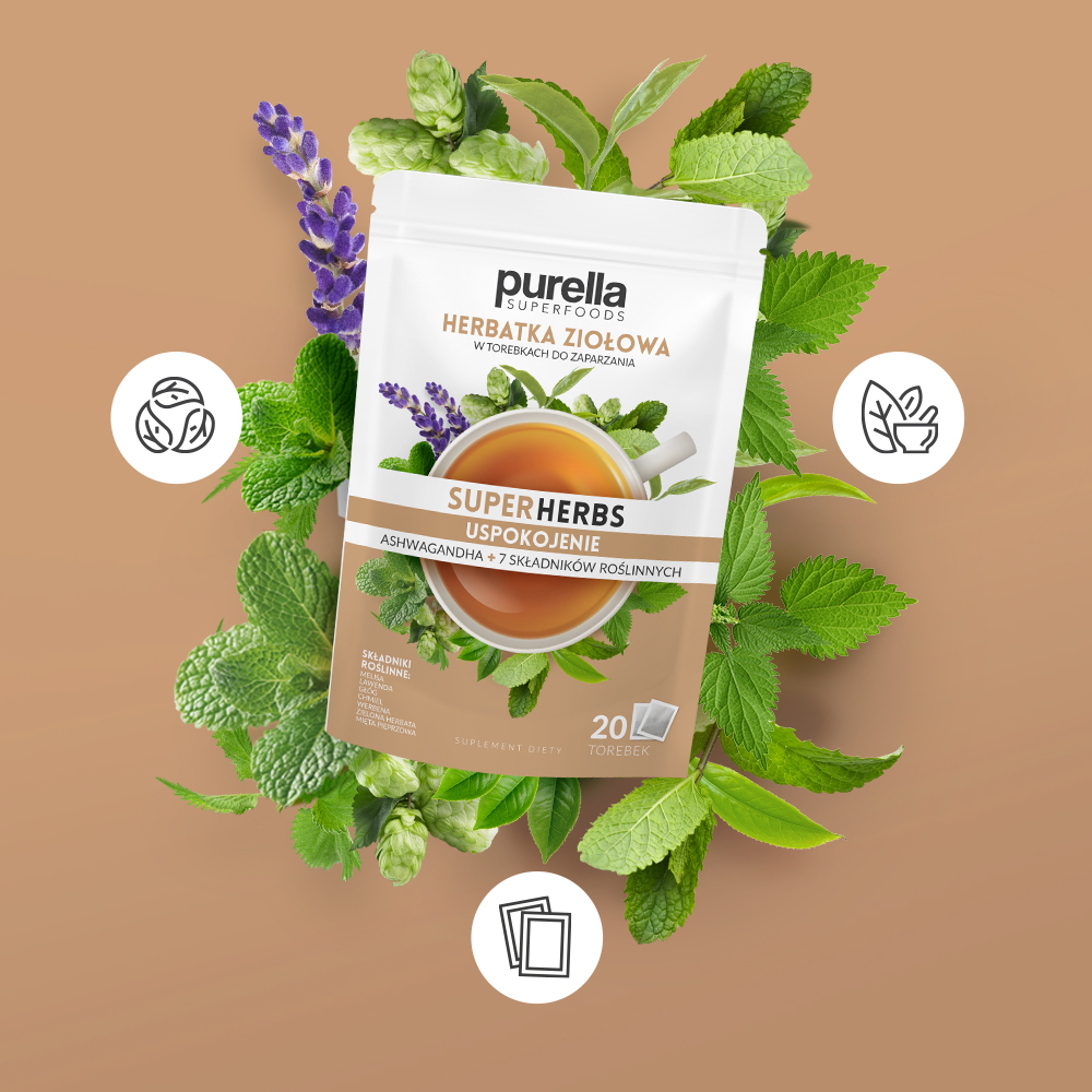 Herbatka ziołowa Uspokojenie ashwaganda Purella Superfoods Superherbs 20 szt