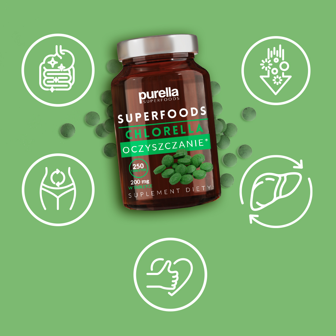 Suplement diety Chlorella 100% oczyszczanie Purella Superfoods 250 kaps